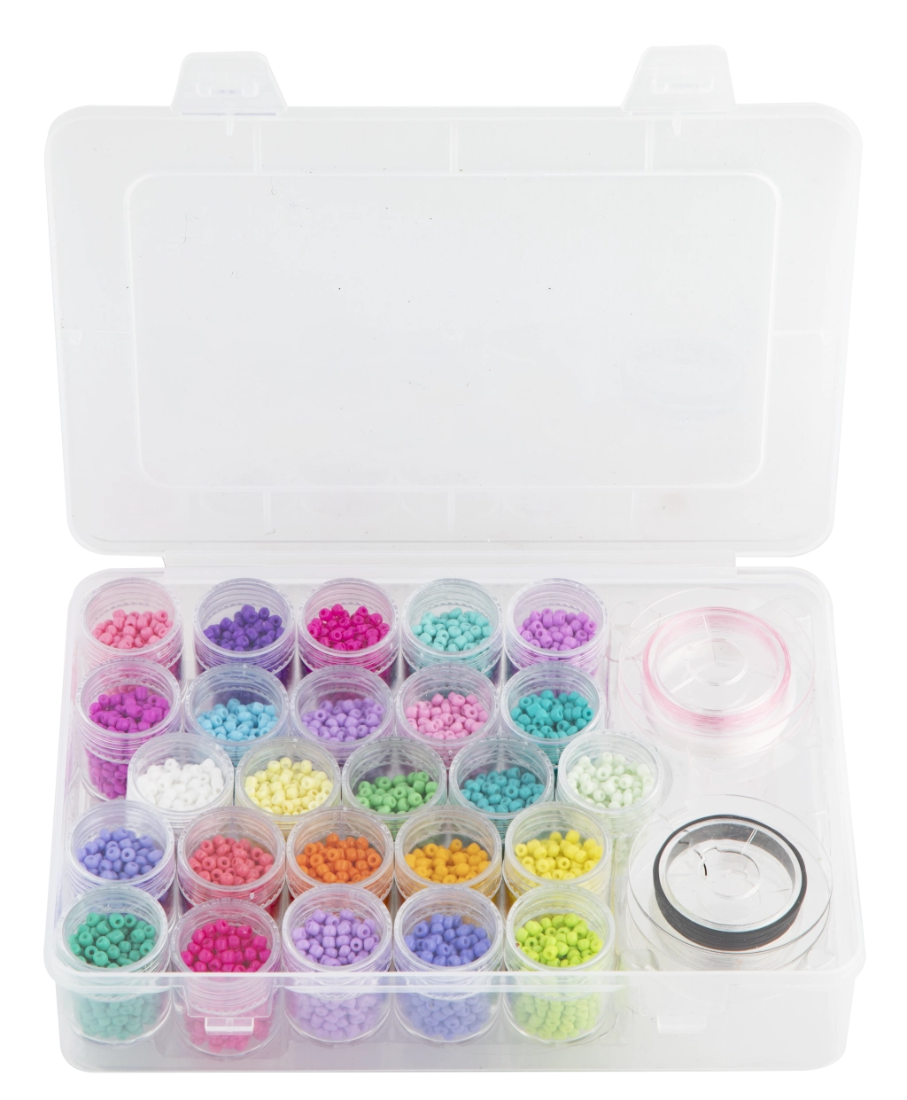 Ta velik komplet steklenih perlic prinaša bogat izbor 25 barv za vaše ustvarjalne projekte. Zahvaljujoč prozornemu organizatorju s predelki imate vse odtenke pregledno pri roki in lahko hitro kombinirate barve za edinstvene dizajne.