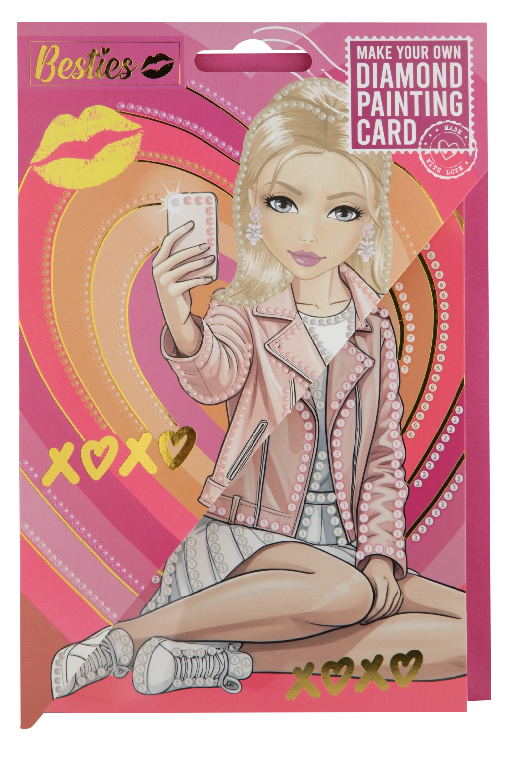 Ustvarite čudovite in bleščeče voščilnice za vsako priložnost. Komplet za diamantno slikanje voščilnic Besties je idealen za začetnike in napredne – sledite predtiskanemu vzorcu in lepilni površini, namestite kamenčke in vaša voščilnica je v hipu končana.