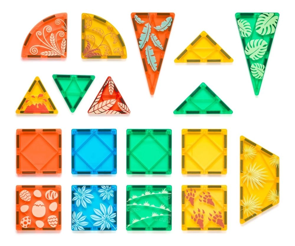 Ta magnetna sestavljanka otrokom prinaša ure zabave in učenja. Prosojni koščki v različnih oblikah se zlahka povezujejo z magneti, zato lahko otroci gradijo hiše, jame, mostove ali celotne dino svetove. Figurice dinozavrov zgodbam vdahnejo življenje in podpirajo domišljijsko igro.