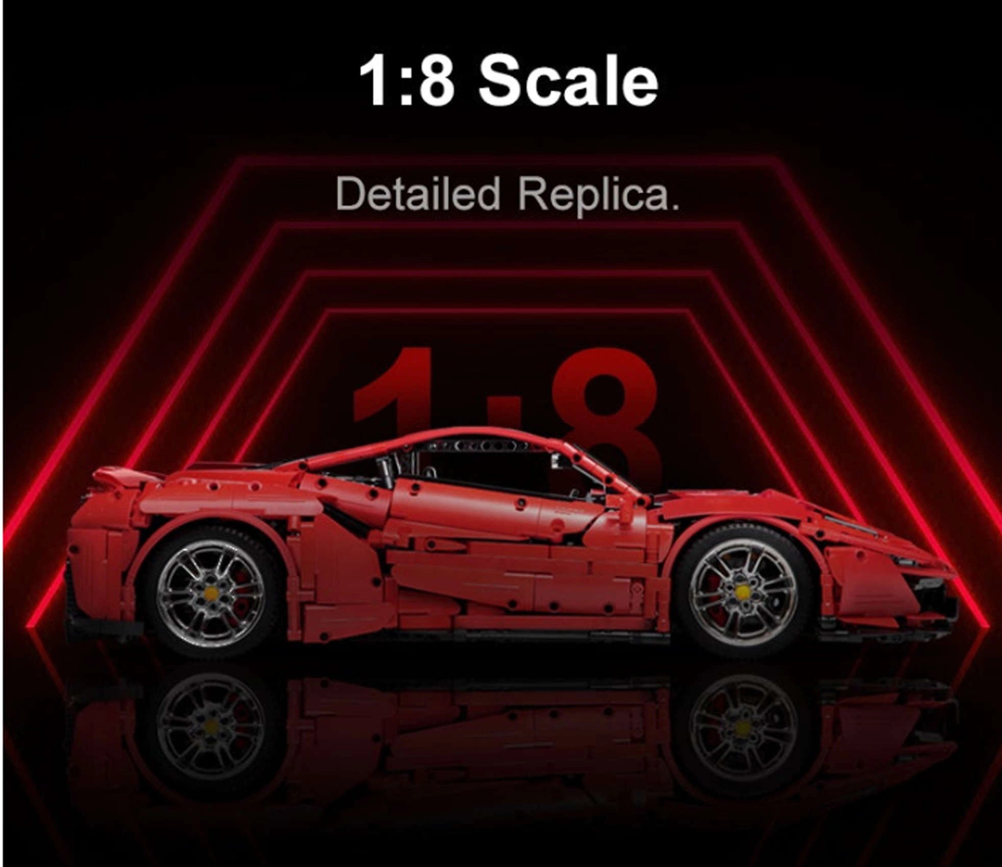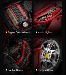 S tem modelom Italian Super Car podjetja CaDA boste uživali v urah natančnega sestavljanja in realistične vožnje. Karoserija v rdeči barvi s kontrastnimi črnimi elementi, funkcionalne LED luči in dovršena notranjost dajejo vašemu modelu razstavni videz. Zaradi neodvisnega vzmetenja, pogona na zadnja kolesa in krmiljenja, povezanega z volanom, je vožnja izjemno prepričljiva.