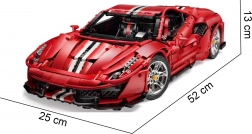 Doživite mojstrsko gradbeno izkušnjo s serijo CaDA Master. Ta velik model športnega avtomobila izstopa z natančno izdelavo – od realističnega kokpita preko motorja V8 do neodvisnega vzmetenja sprednje in zadnje preme. Odpirajoča se vrata, pokrov motorja in prtljažnik poudarjajo pristnost, rdeča karoserija s kontrastnimi elementi pa modelu doda dirkaški značaj.