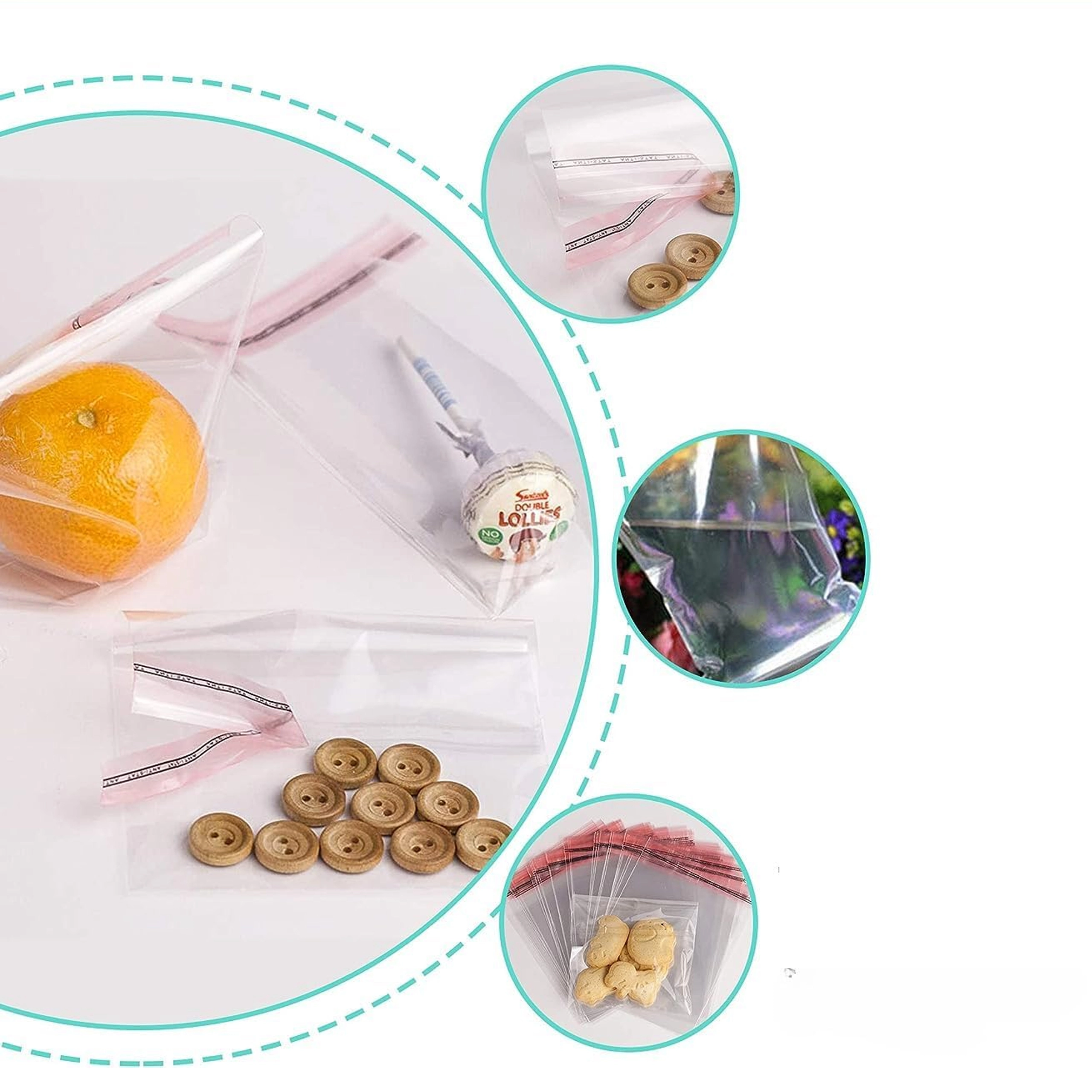 Samolepilni zavihek omogoča hitro zapiranje brez orodja; lepilo drži zanesljivo, hkrati pa omogoča ponovno odpiranje in zapiranje. Zaradi atesta za stik z živili so vrečke idealne za piškote, sladkarije in pekovske izdelke.
