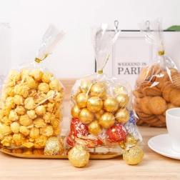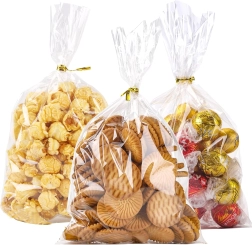 Vrečke so primerne za stik z živili; odlične za pokovko, piškote ali čokolade, pa tudi za drobna darila in poslovne paketke.