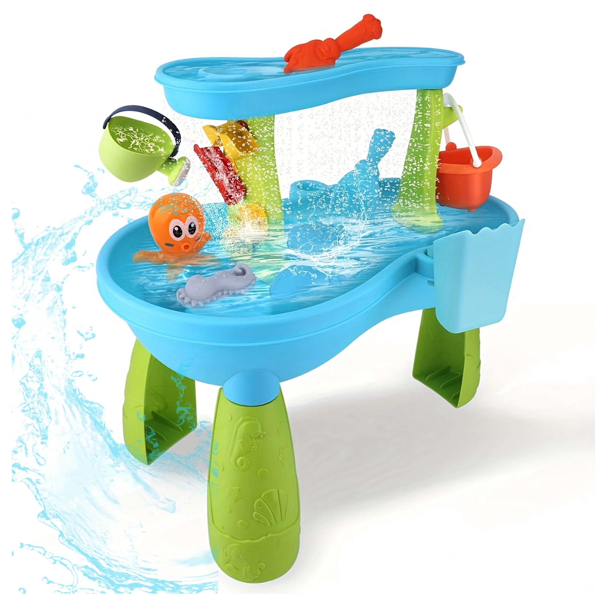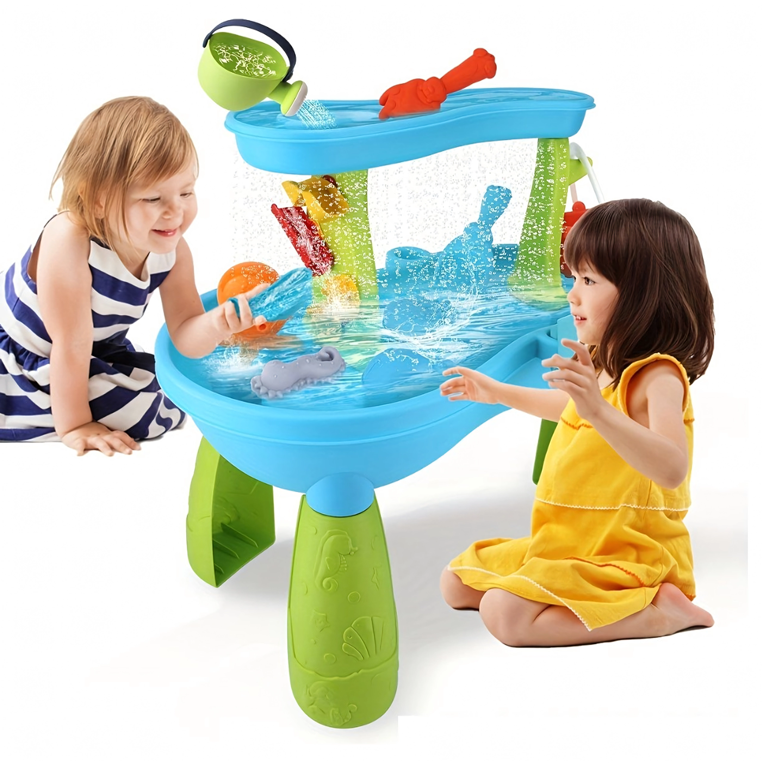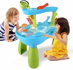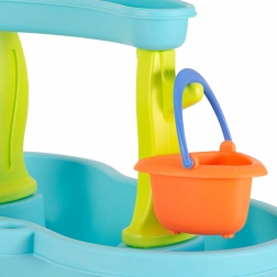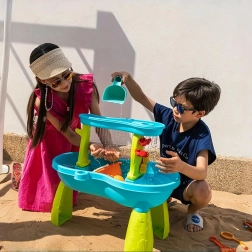 Odkrijte vsestransko vodno in peskovno mizico 2v1, ki vsako popoldne na vrtu spremeni v pustolovščino. Otroci lahko vlivajo vodo, opazujejo vrtenje kolesc, ustvarjajo peščene stvaritve in raziskujejo različne teksture. Stabilna plastična konstrukcija in zaobljeni robovi zagotavljajo varno igro za najmlajše.