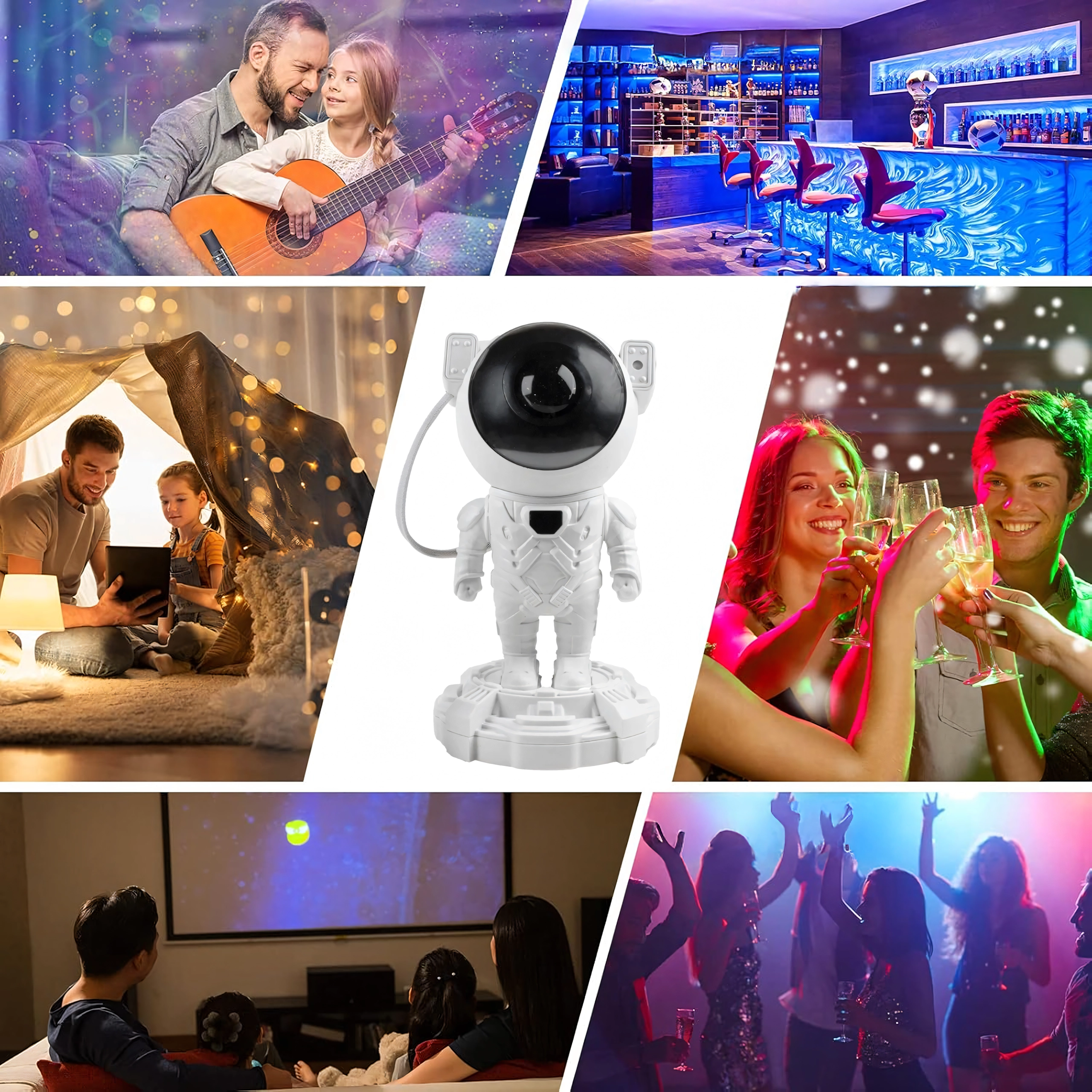 Ustvarite otrokom mirno okolje za uspavanje in zabavo. Dizajn malega astronavta z bleščečim vizirjem projicira barvite meglice in zvezde na strop in stene ter tako ustvari prijetno atmosfero za sprostitev, branje in večerne rituale. Zahvaljujoč daljinskemu upravljalniku zlahka preklapljate načine, spreminjate barve in prilagajate svetlost.