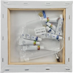 Platno je napeto na trden lesen okvir, kar zagotavlja udobno slikanje in možnost, da sliko takoj po dokončanju obesite.