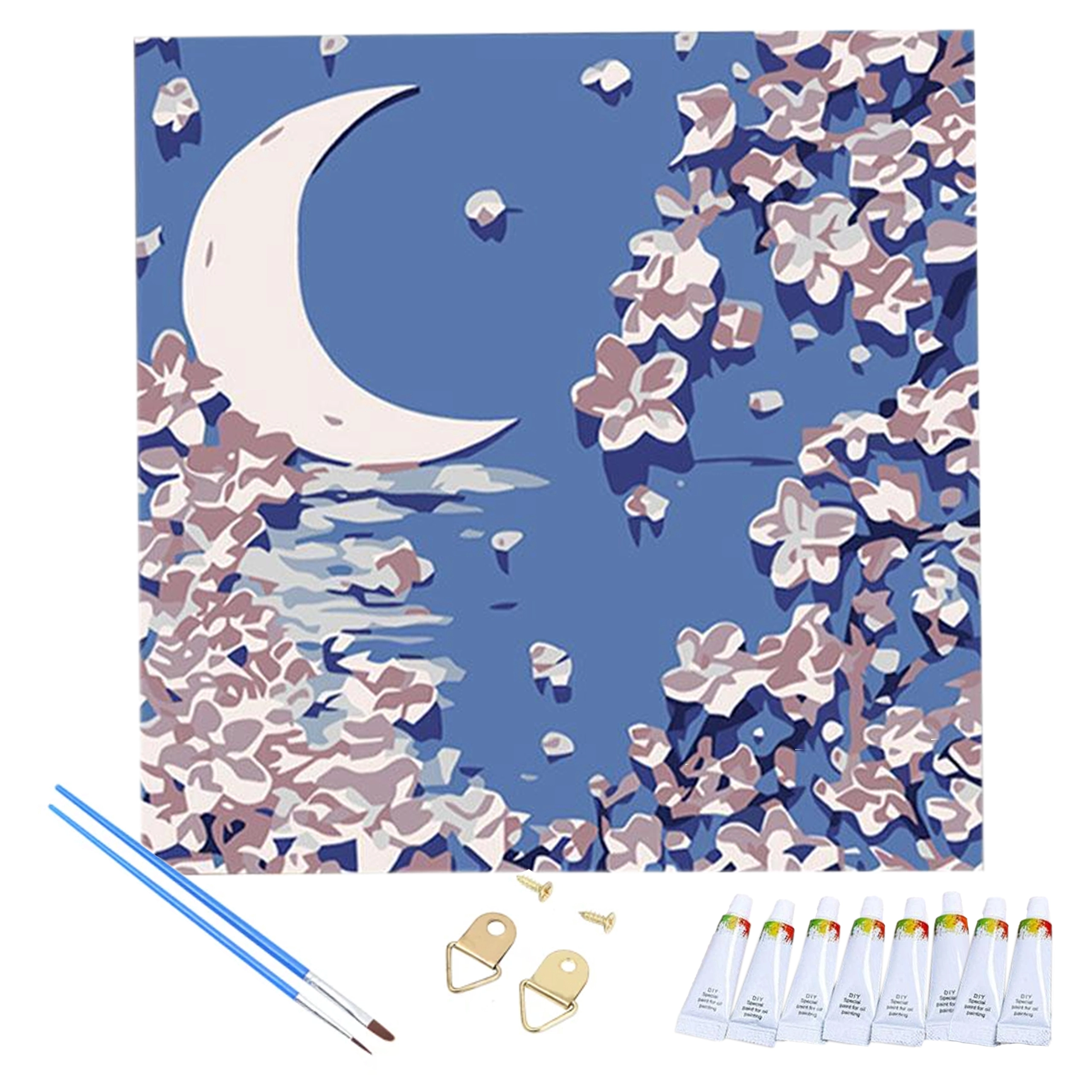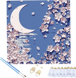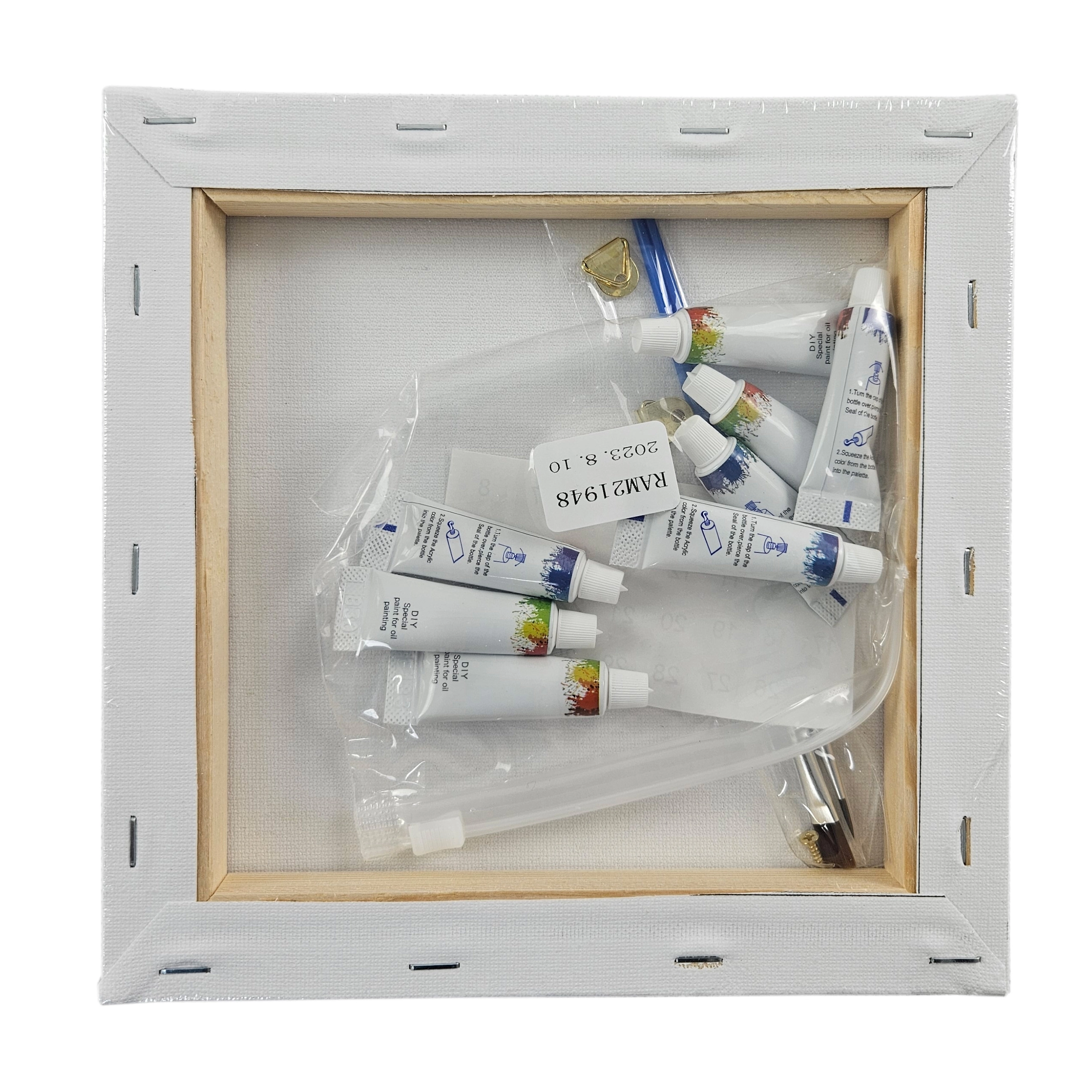 Celovit komplet s oštevilčenim platnom, akrilnimi barvami, čopiči in obešalnim priborom. Začnite ustvarjati takoj po razpakiranju.