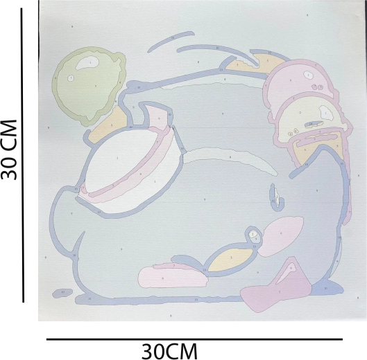 Set je prilagojen otroški težavnosti in vsebuje vse potrebno: predtiskano platno 30 × 30 cm, komplet akrilnih barv in čopiče. Vzorec in barvna paleta sta poslana naključno z otroškimi motivi, da bo slikanje zabavno in dostopno.