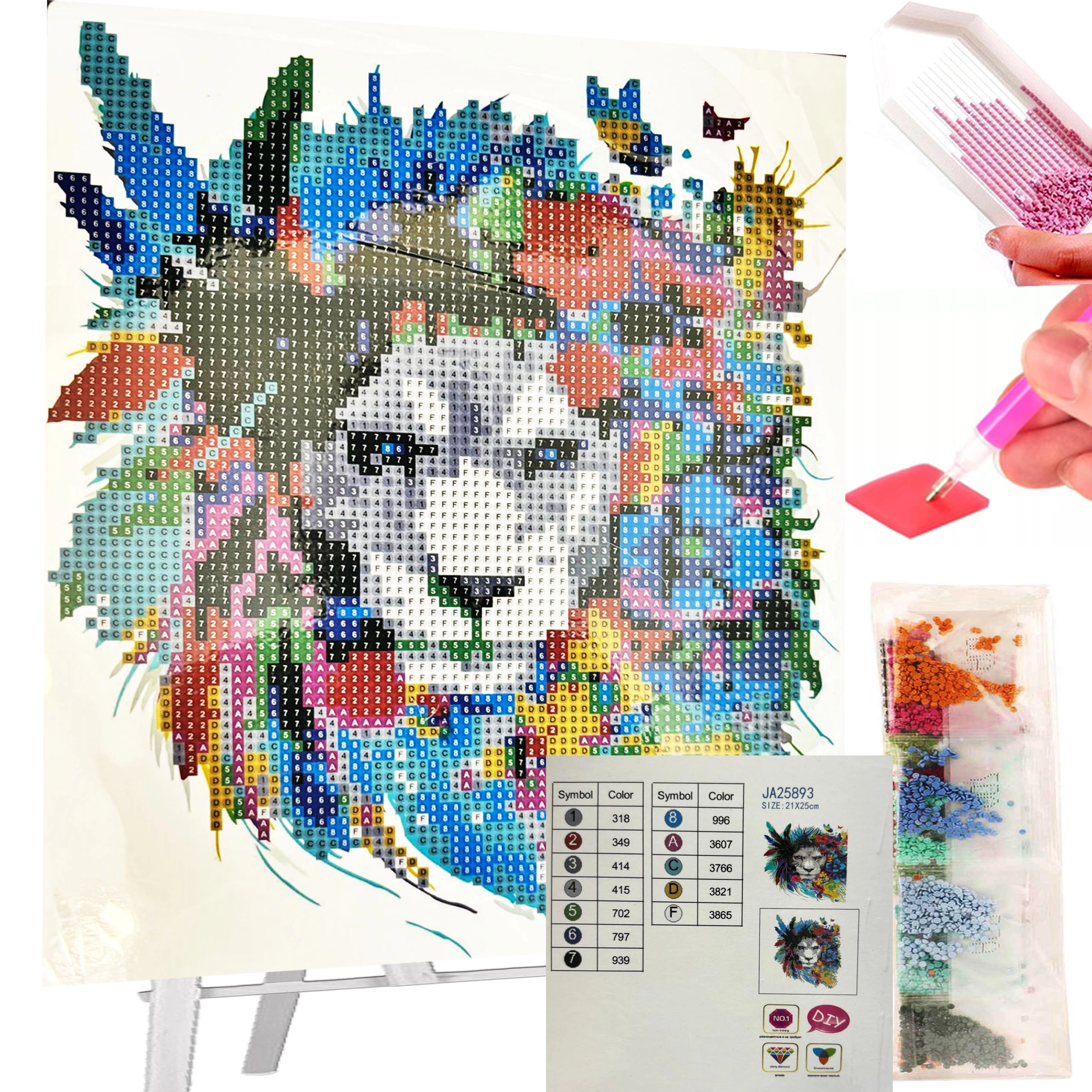 Diamantna mozaična tehnika je preprosta in hkrati zelo privlačna ustvarjalna dejavnost. Zahvaljujoč pregledni kodi na platnu zlahka nameščate bleščeče kamenčke na prava mesta in postopoma nastaja bleščeča slika, ki jo po dokončanju postavite na priloženo belo stojalo. Idealno za sprostitev po šoli ali delu ter za skupno ustvarjanje z otroki.