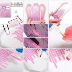 Aplikacijsko pero z voskom in pladenj z žlebovi olajšata zajemanje ter natančno polaganje kamenčkov na samolepilno platno.