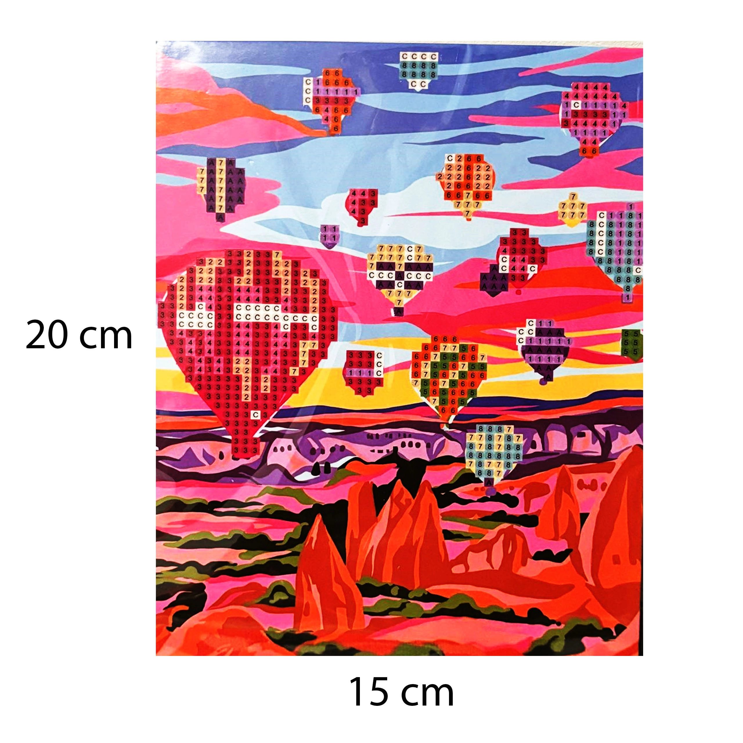 Postopek je preprost: kamenčke stresete v pladniček z žlebovi, jih s aplikatorjem z voskom poberete in po kodi lepite na predtiskano platno. Zaradi jasnega označevanja je projekt idealen za otroke in popolne začetnike.