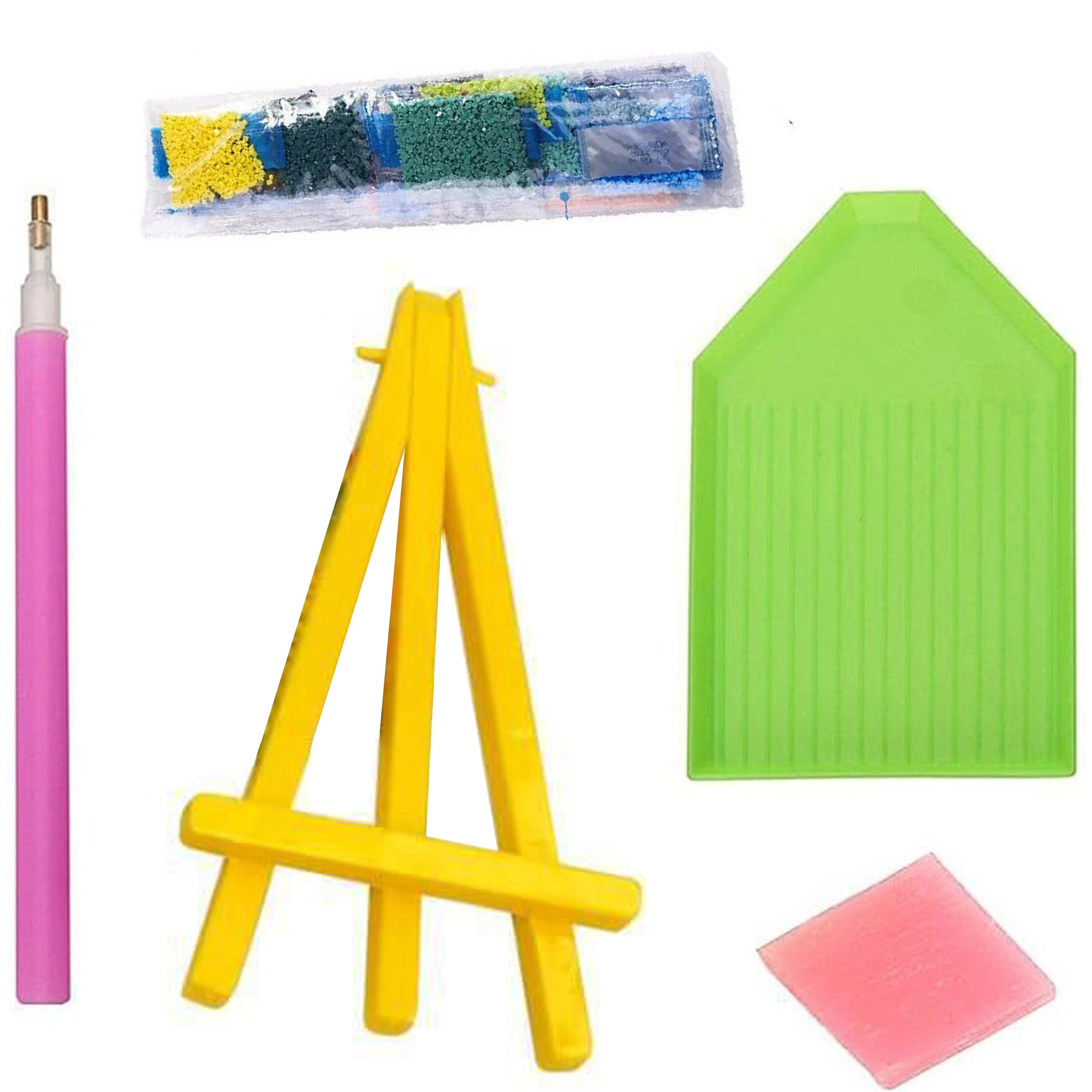 Diamantna mozaična tehnika je zabaven in pomirjujoč hobi, ki vas popelje v svet bleščečih detajlov. Ta set prinaša vse, kar potrebujete za ustvarjanje lastnega sijočega dela – od platna s simboli do aplikatorja in voska. Končno sliko preprosto razstavite na belem stojalcu, zato takoj postane okras police ali pisalne mize.