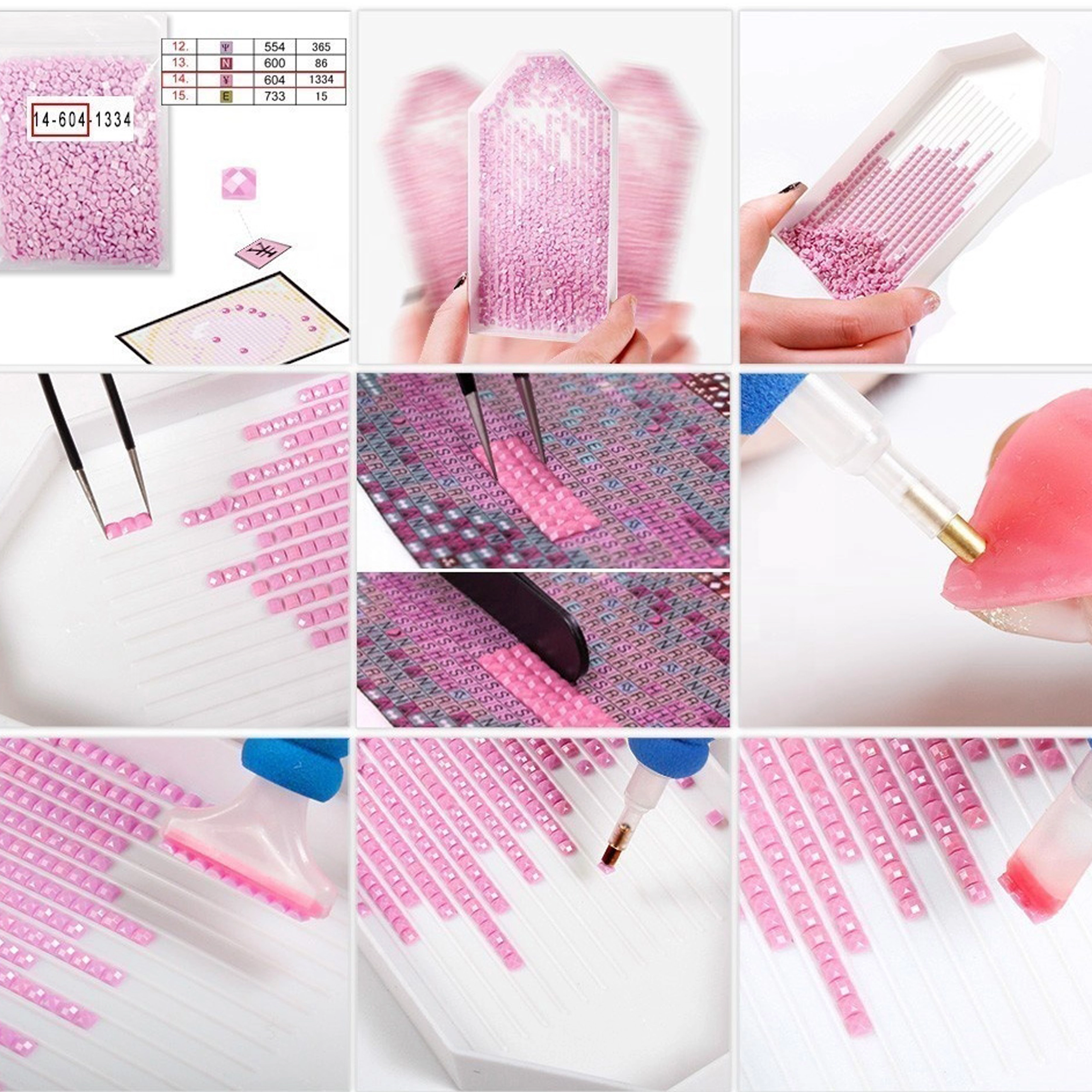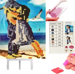 Diamantna mozaična tehnika je idealna dejavnost za mirno popoldne ali skupno ustvarjanje z otroki. Komplet je zasnovan tako, da je postopek preprost in zabaven – barvne “diamante” lepíte po simbolih na platnu in korak za korakom nastaja bleščeča slika. Končano delo preprosto razstavite na priloženem stojalu.