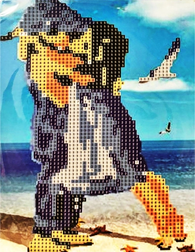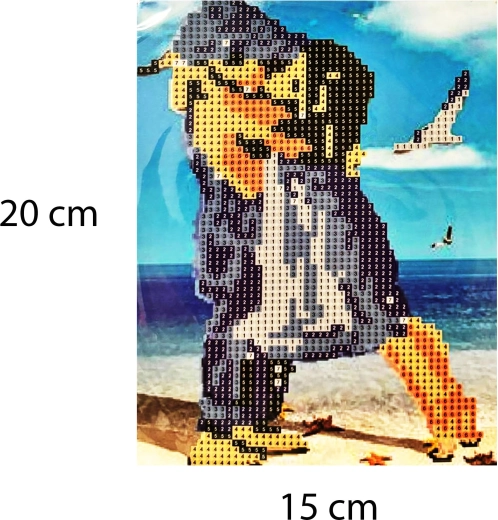 - Samolepilno platno 15 × 20 cm s predtiskano šablono in legendo barv