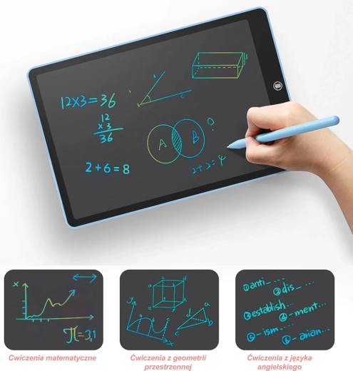 Zahvaljujoč izjemno lahki in tanki zasnovi se tablica prilega v nahrbtnik ali torbico. Pisalo ima varno mesto v zgornjem držalu, zato se ne izgubi. Odlična je za domače naloge, vadbo pisanja, risanje, sezname in sporočila – kadarkoli in kjerkoli, brez papirja in nereda.