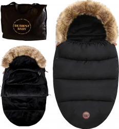Ta prvovrstna zimska vreča je zasnovana za maksimalno udobje in zaščito otroka v hladnih mesecih. Zunanja vodoodporna in vetrno odporna tkanina zanesljivo ščiti pred dežjem in snegom, medtem ko mehka flis podloga z toplo izolacijo ohranja stabilno toploto. S krznom obrobljena kapuca ščiti pred hladnim vetrom in poveča občutek udobja.