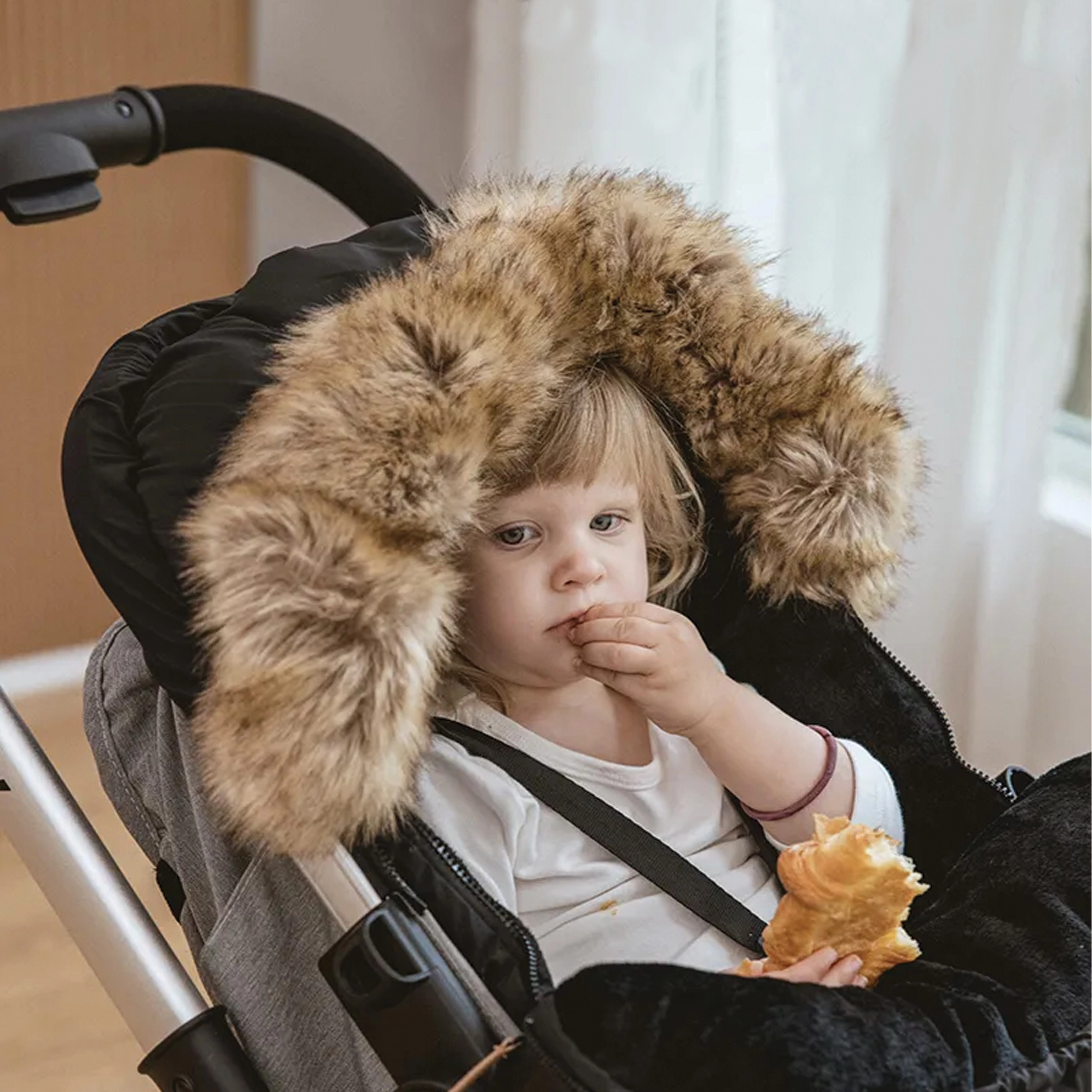 Močna izolacija, mehka podloga in kapuca s krznom ohranjajo otroka na toplem tudi med zimskimi sprehodi. Idealno za spanje in sedenje.