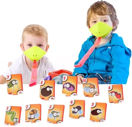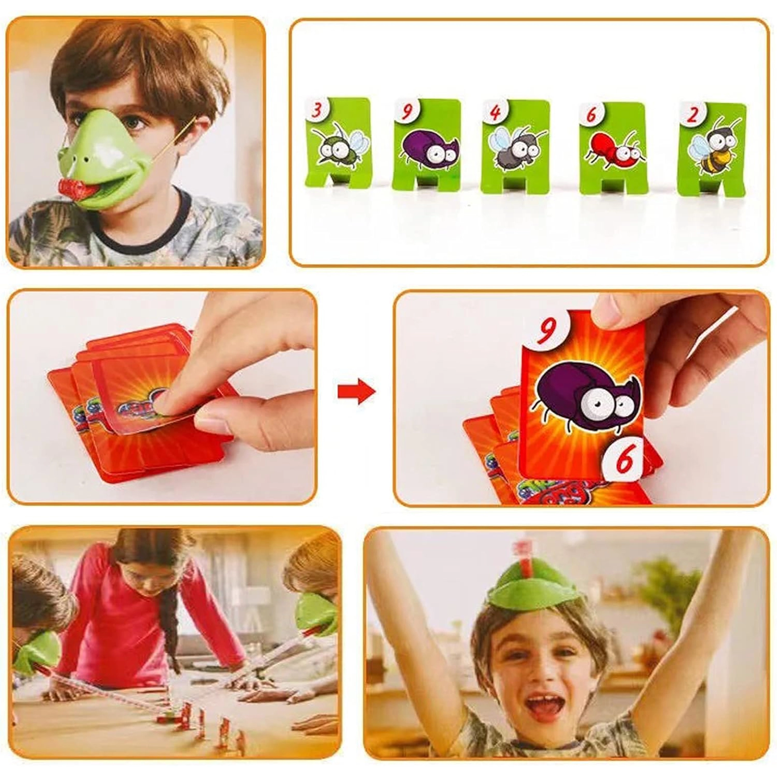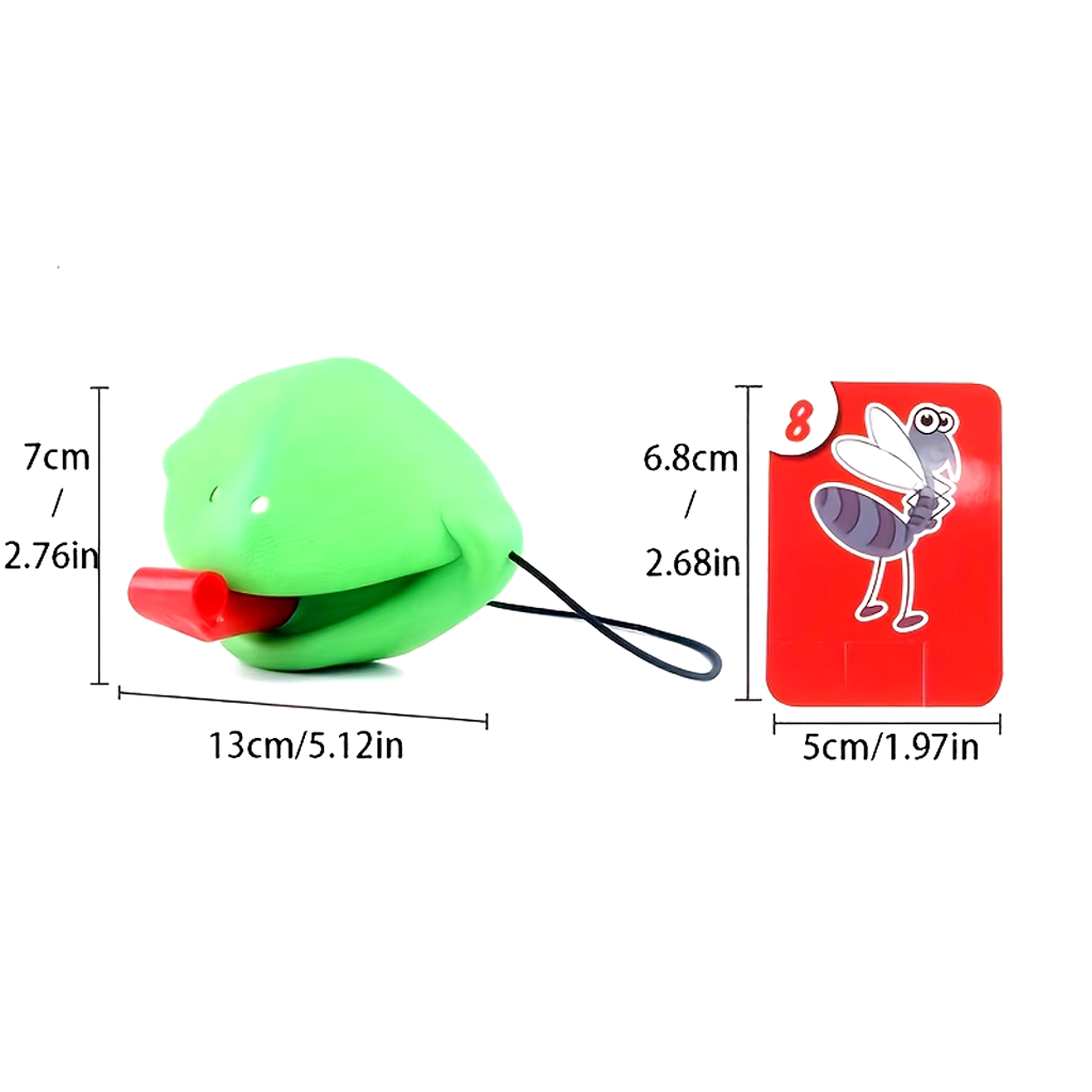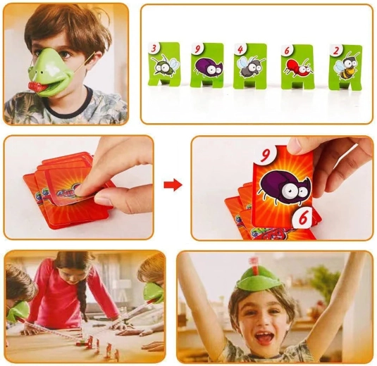 Nadenete si masko, iztegnite jezik in lov se začne! Ta živahna zabavna igra povezuje gibanje, pozornost in ščepec norišnice. Cilj je čim hitreje zadeti ali pobrati stoječe kartice s številkami in žuželkami ter postati kralj žabjega ribnika. Zaradi preprostih pravil se igre zlahka udeležijo tudi mlajši otroci, odrasli pa uživajo v napeti tekmovalnosti.