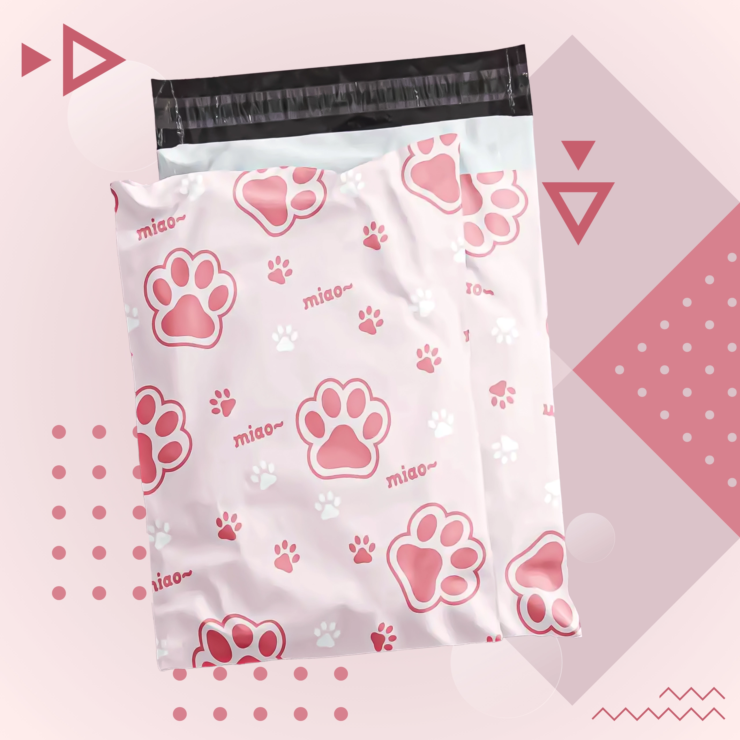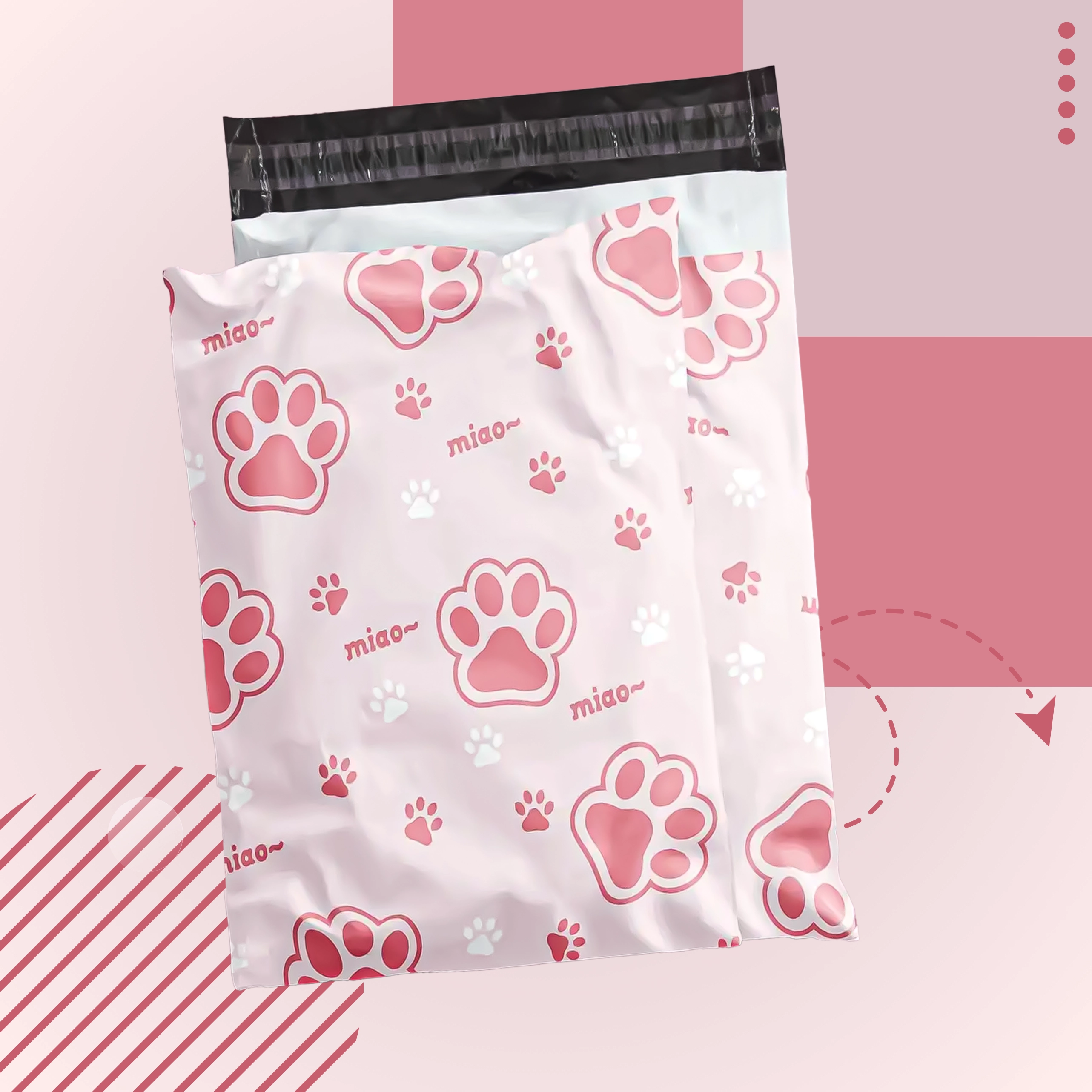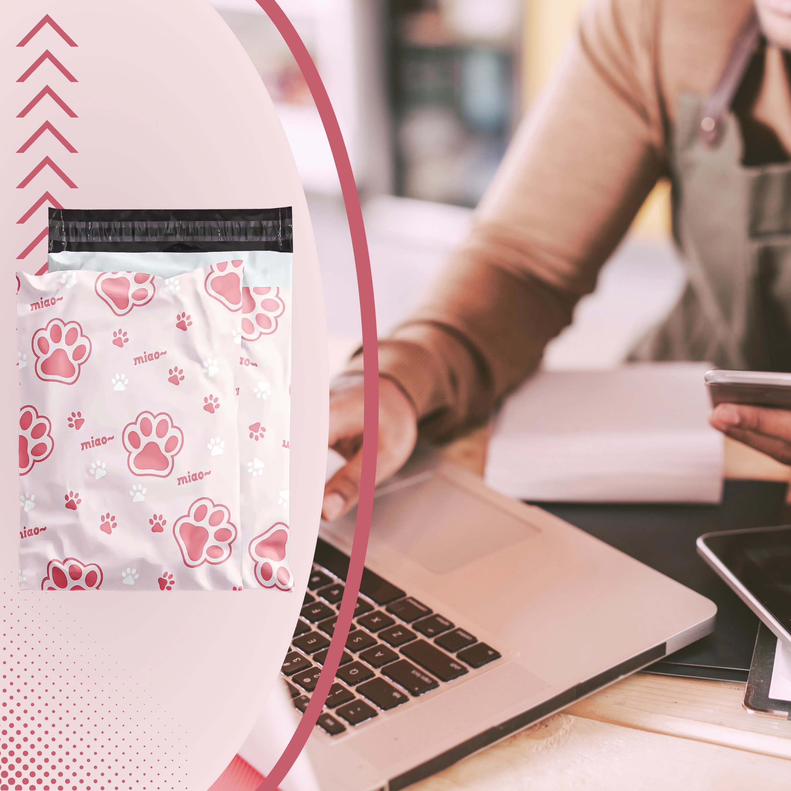Stilski in trpežni polietilenski mailerji z motivom mačjih tačk poenostavijo vaše pakiranje naročil. Zahvaljujoč samolepilnemu traku pošiljko zaprete v nekaj sekundah, medtem ko čvrst in vodoodporen material ščiti vsebino med transportom. Dimenzija 320 × 450 mm je primerna za tekstil, dodatke, manjše škatle in drugo blago.