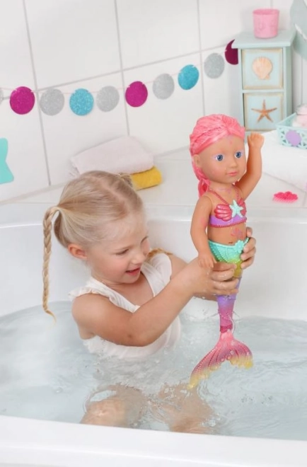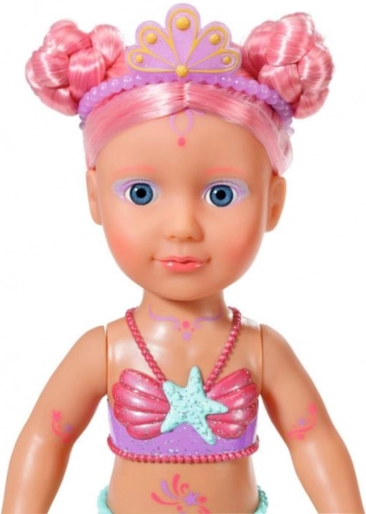 BABY born Little morska princesa je neustavljiva punčka z dolgimi rožnatimi lasmi, okrašenimi z vijoličnim trakom. Punkčin rep je čudovito barvit, sijoč in se ob stiku z vodo premika, kar ustvarja čarobno atmosfero. Ima kopalke z motivom školjke, ki se odlično ujemajo z repom.
