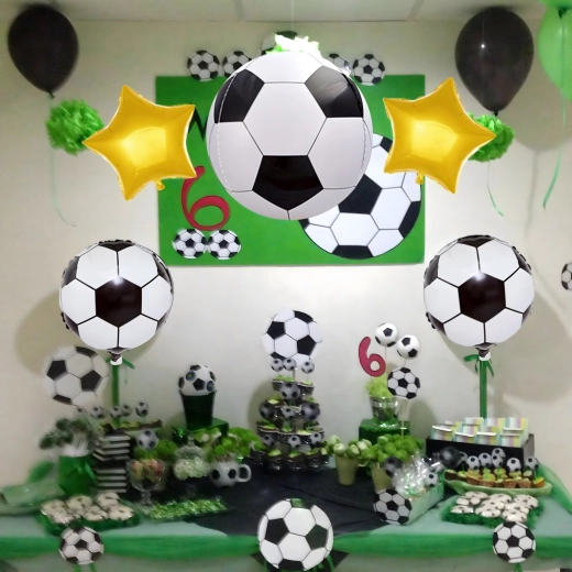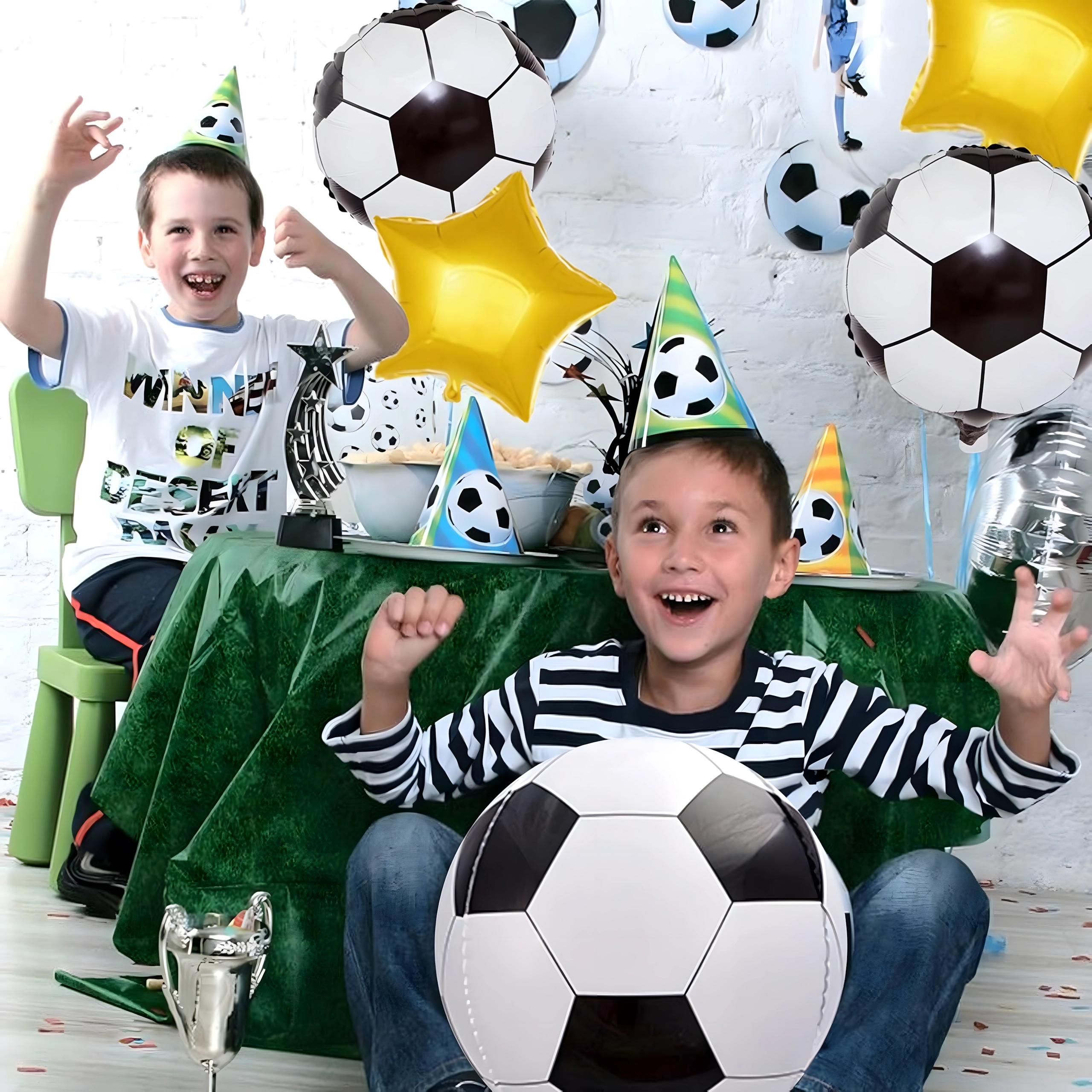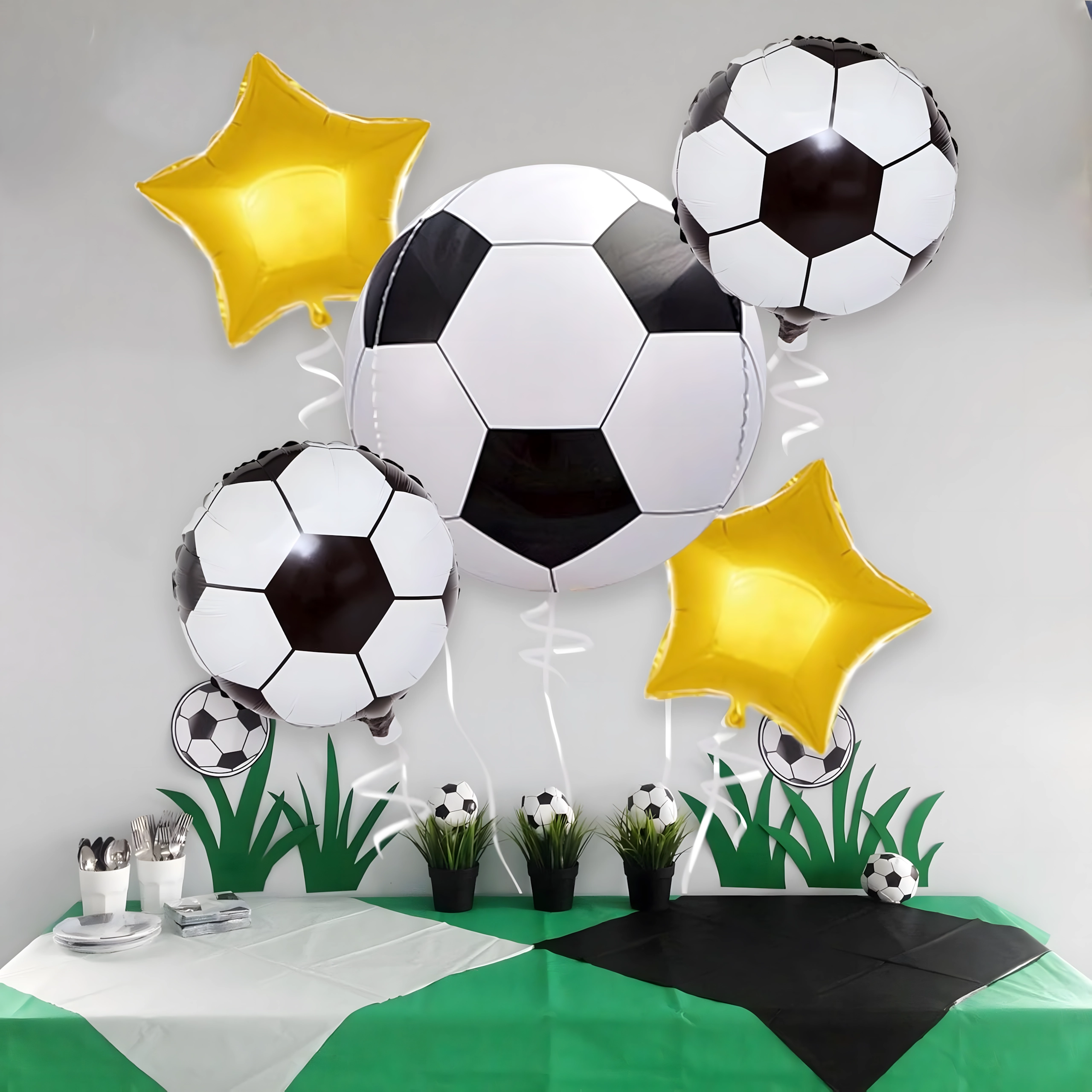 Ustvarite nepozabno vzdušje na rojstnodnevni zabavi z izvirnim kompletom balonov v nogometnem slogu. Kombinacija realističnih balonov v obliki žoge in elegantnih zlatih zvezd bo vaši dekoraciji dala profesionalen videz in poudarila nogometno tematiko.