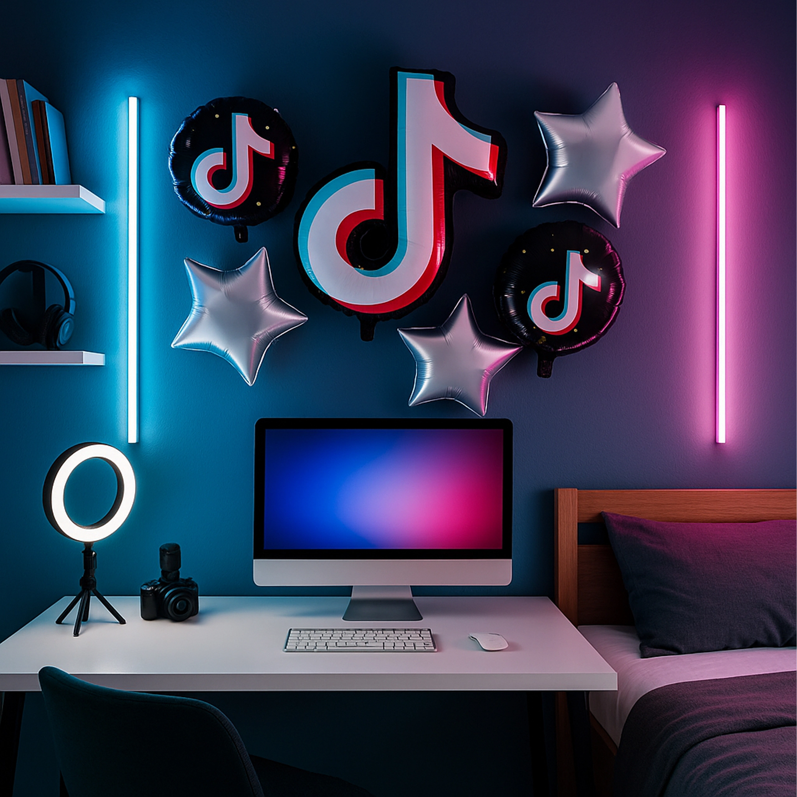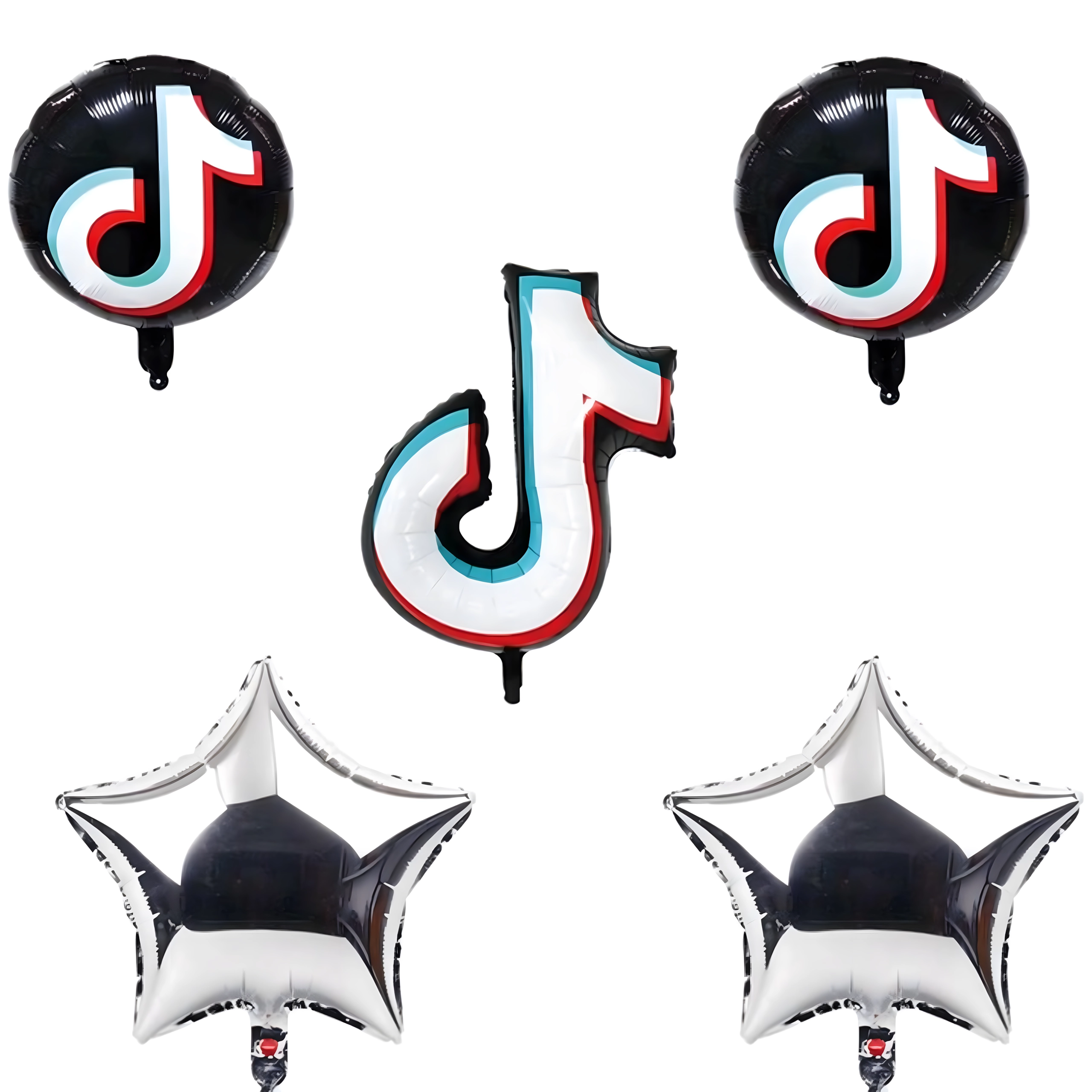 Ustvarite vzdušje družbenih omrežij na svoji zabavi! Ta komplet balonov z motivom TikTok doda dekoraciji moderen videz ter je odlična izbira za najstniške zabave, rojstne dni in tematske večere. Velika folijska nota je nepogrešljivo središče dekoracije, okrogli baloni s potiskom in srebrne zvezde pa dopolnijo videz v popolno celoto.