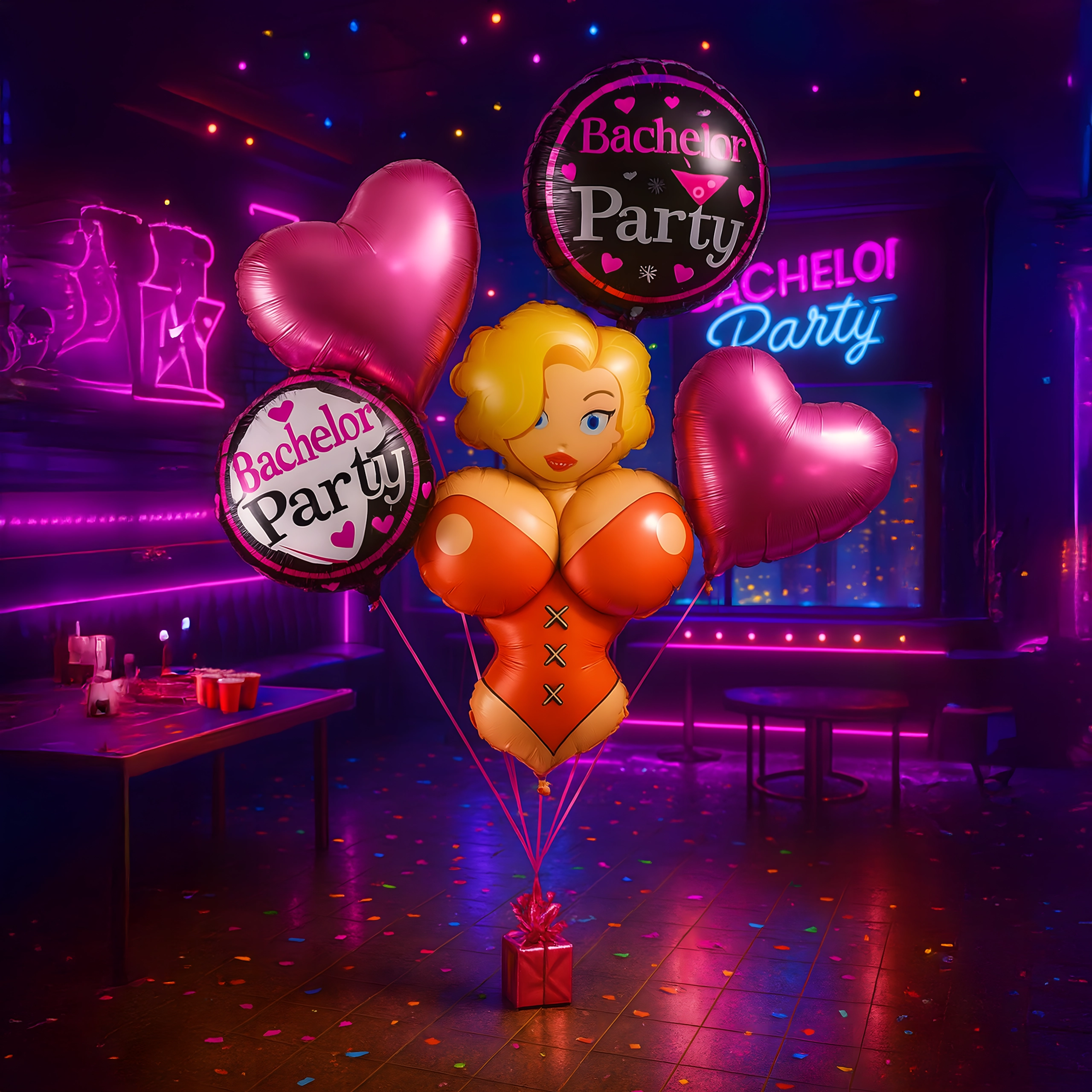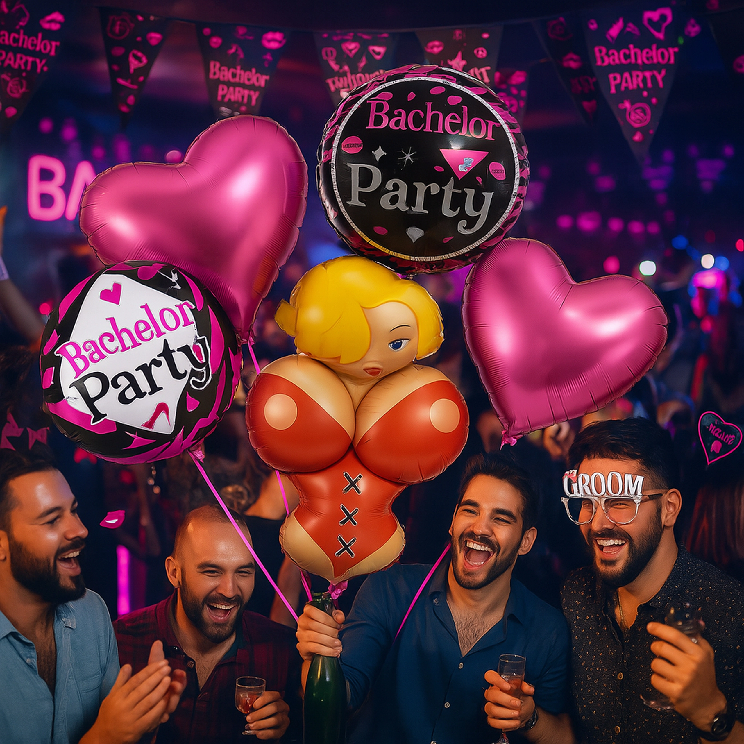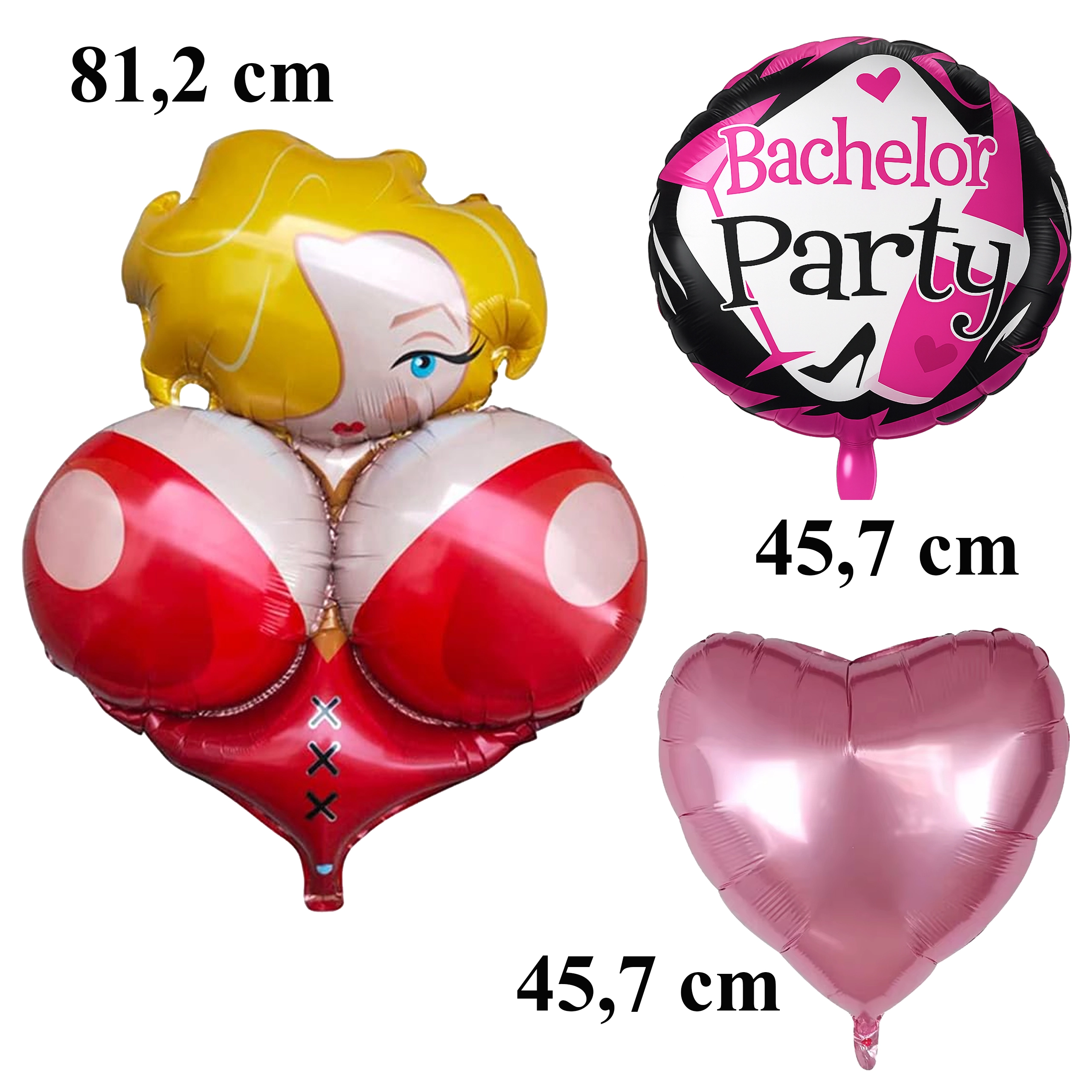 Ta komplet je odlična izbira za fotokotiček, okrasitev mize in prostora okoli slavljenca. Balone lahko napihnete s helijem ali zrakom (glede na tip), zlahka jih kombinirate z drugimi party dodatki in so primerni za fantovščine, tematske zabave in Bride-to-Be dogodke.