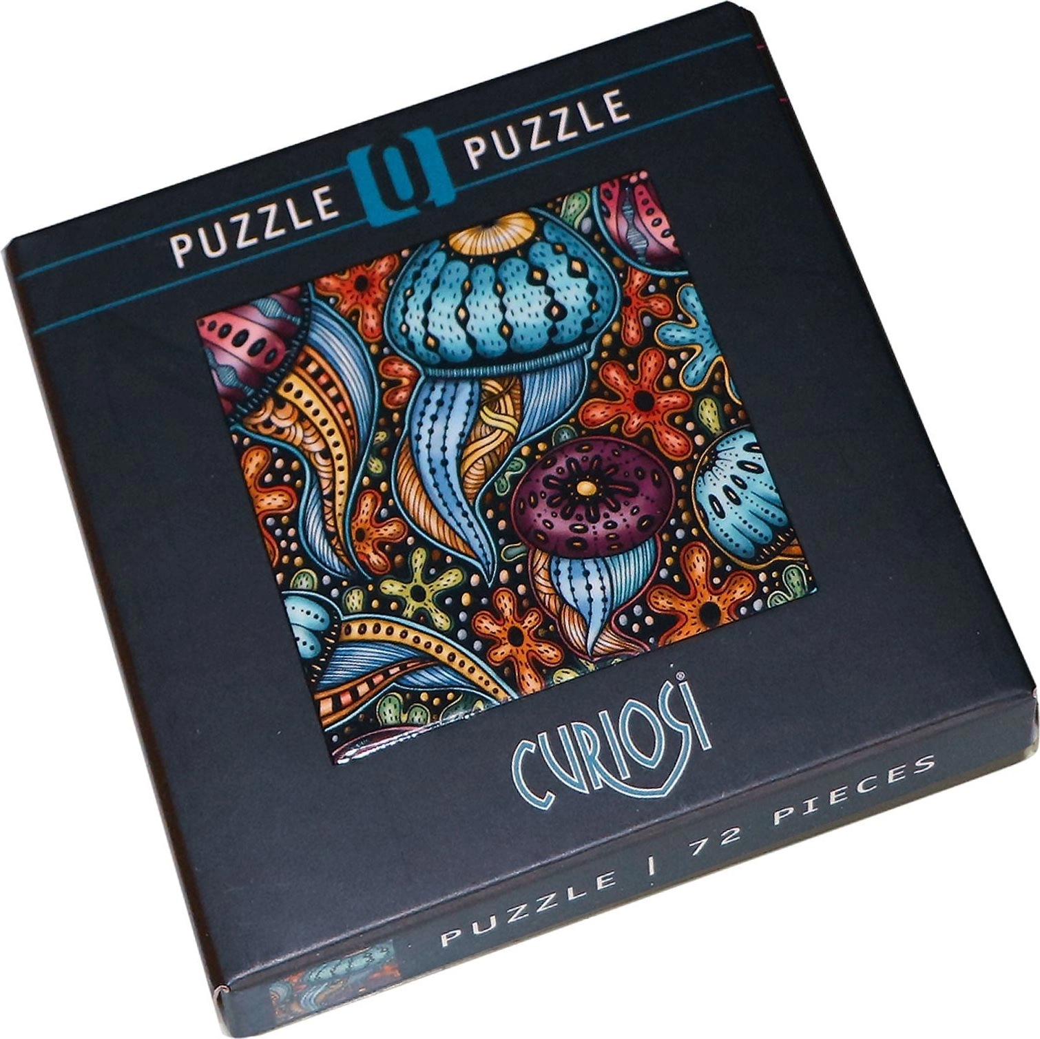 Stilska mini sestavljanka s pisanimi meduzami izstopa z edinstvenim kvadratnim formatom in izvirno izvedbo. Zahvaljujoč netradicionalnim oblikam koščkov prinaša zabavno sestavljanje, ki navduši tudi bolj izkušene navdušence.