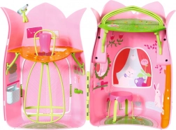 Odkrijte svet domišljije s Hišico Pisalne Zgodbe BABY born, kjer vsak kotiček spodbuja nove zgodbe. Z odpiranjem hišice v obliki cveta se razkrije prečudovita notranjost z mizico, kaminom in gugalnico, obešeno s stropa igralnice. Na steni je predalček za shranjevanje čarobne paličice, zato igre nikoli ne zmanjka.