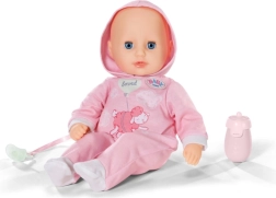 Ljubka punčka BABY born Hannah velikosti 36 cm je idealna prijateljica za vsakodnevno igro in crkljanje. Ponaša se z mehkim tekstilnim telescem, realističnimi otroškimi zvoki, zna piti iz stekleničke z zvoki pitja, zapira oči in ob uspavanju oddaja nežne, pomirjujoče zvoke. V paketu sta duda in steklenička.