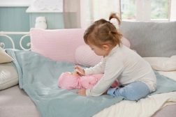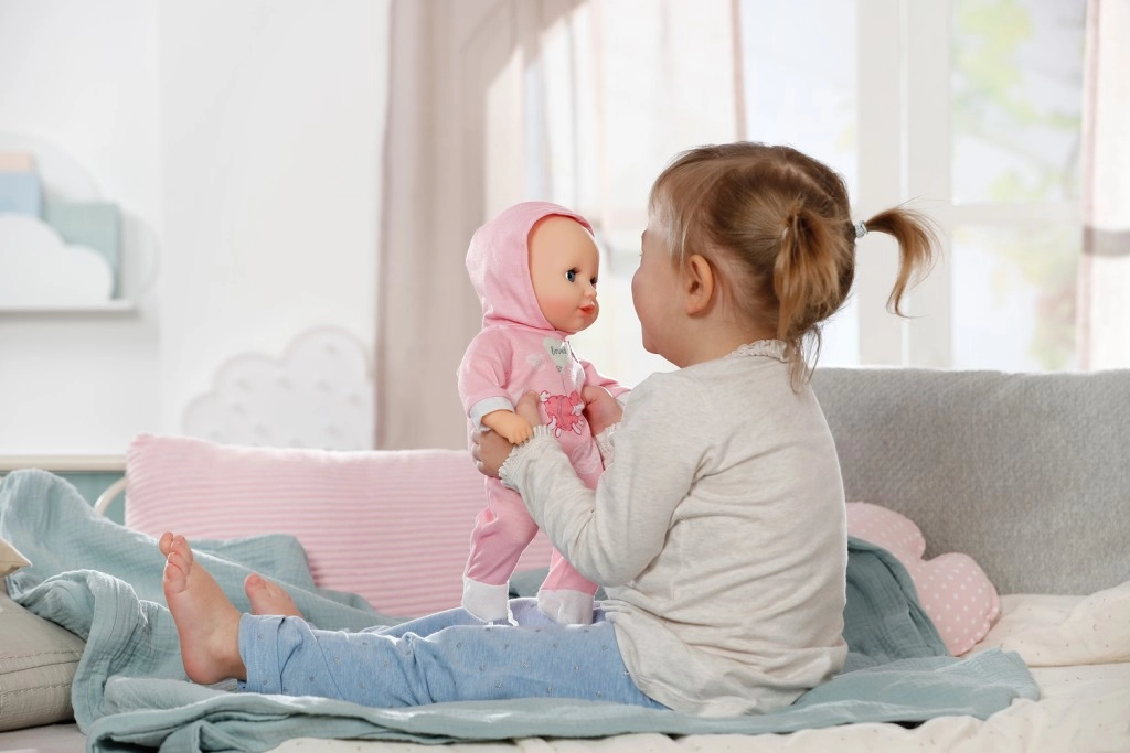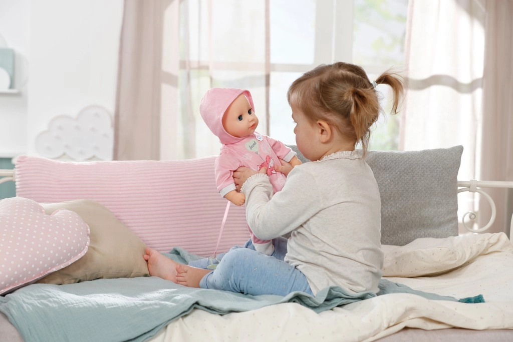 Ta punčka spodbuja razvoj empatije, fine motorike in domišljije. Odlična je za igro vlog pri negi dojenčka – hranjenje, tolaženje in uspavanje z dudo. Vse je intuitivno in varno za majhne roke.