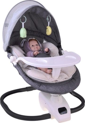 Praktičen otroški ležalnik-gugalnik 3v1 združuje udobno ležanje, nežno guganje in hranjenje v enem. Zahvaljujoč daljinskemu upravljanju, nastavljivemu guganju, melodijam in časovniku zlahka pomiri vaše dojenčka. Mreža proti komarjem, oblazinjen sedež in varnostni pasovi zagotavljajo udobje in varnost od prvih dni življenja.