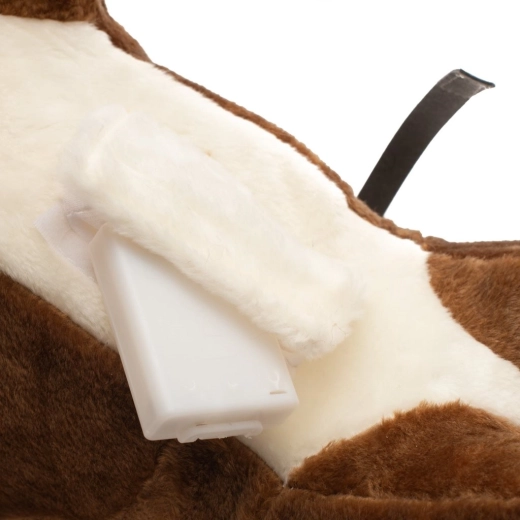 Zaradi stabilne konstrukcije in možnosti demontaže gugalnih letev je konjiček praktičen za domačo uporabo in shranjevanje. Baterijski modul je pametno skrit v žepku na trebuščku. Igrača podpira razvoj motorike, ravnotežja in domišljije.