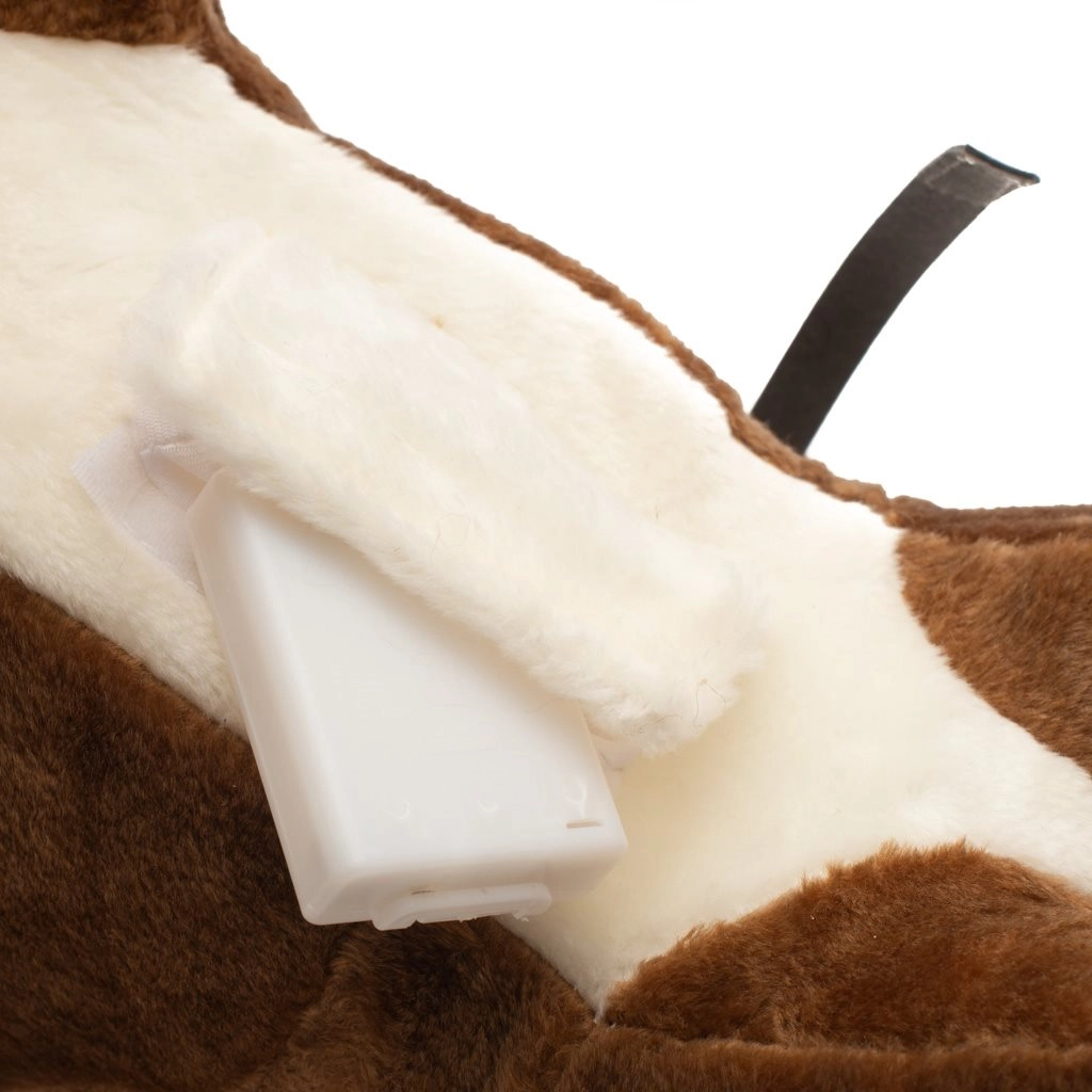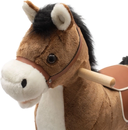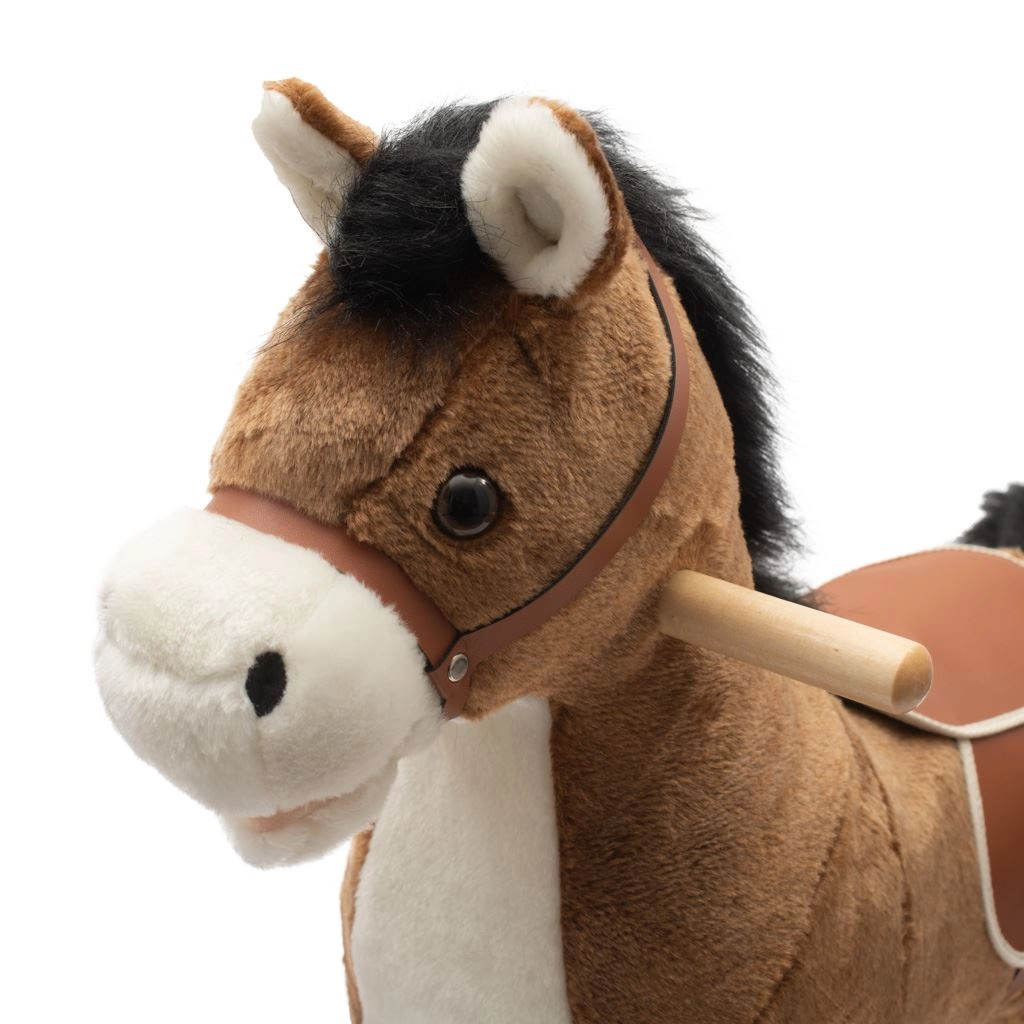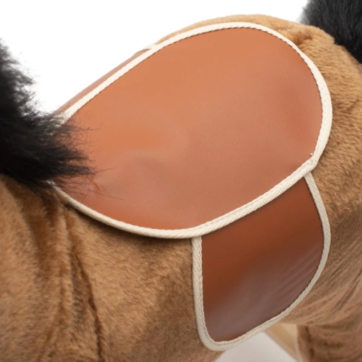 Odkrijte čar otroškega guganja z gugalnim konjičkom PlayTo v rjavi barvi. Ta prisrčen plišasti konjiček ima mehak in udoben površinski material, stabilne lesene letve ter interaktivna ušeska, ki ob pritisku predvajata slovensko in češko pesem »Prši, prši«. Zahvaljujoč čvrsti konstrukciji in ergonomskemu sedežu je vožnja varna in prijetna, igrača pa razvija gibalno koordinacijo in podpira otroško domišljijo.