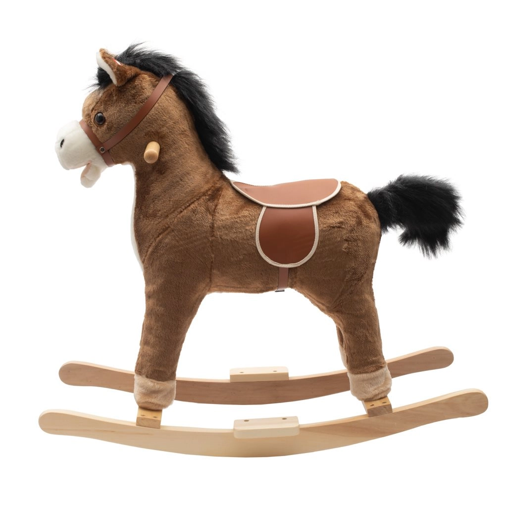 Gugalni konjiček PlayTo je zasnovan za male pustolovce, ki obožujejo guganje in domišljijske vožnje. Mehak pliš je prijeten na dotik, lesene letve omogočajo gladko guganje, oblikovan sedež pa nudi udobje in oporo. Interaktivna funkcija s slovensko in češko melodijo spremeni vsako vožnjo v zabavno doživetje.