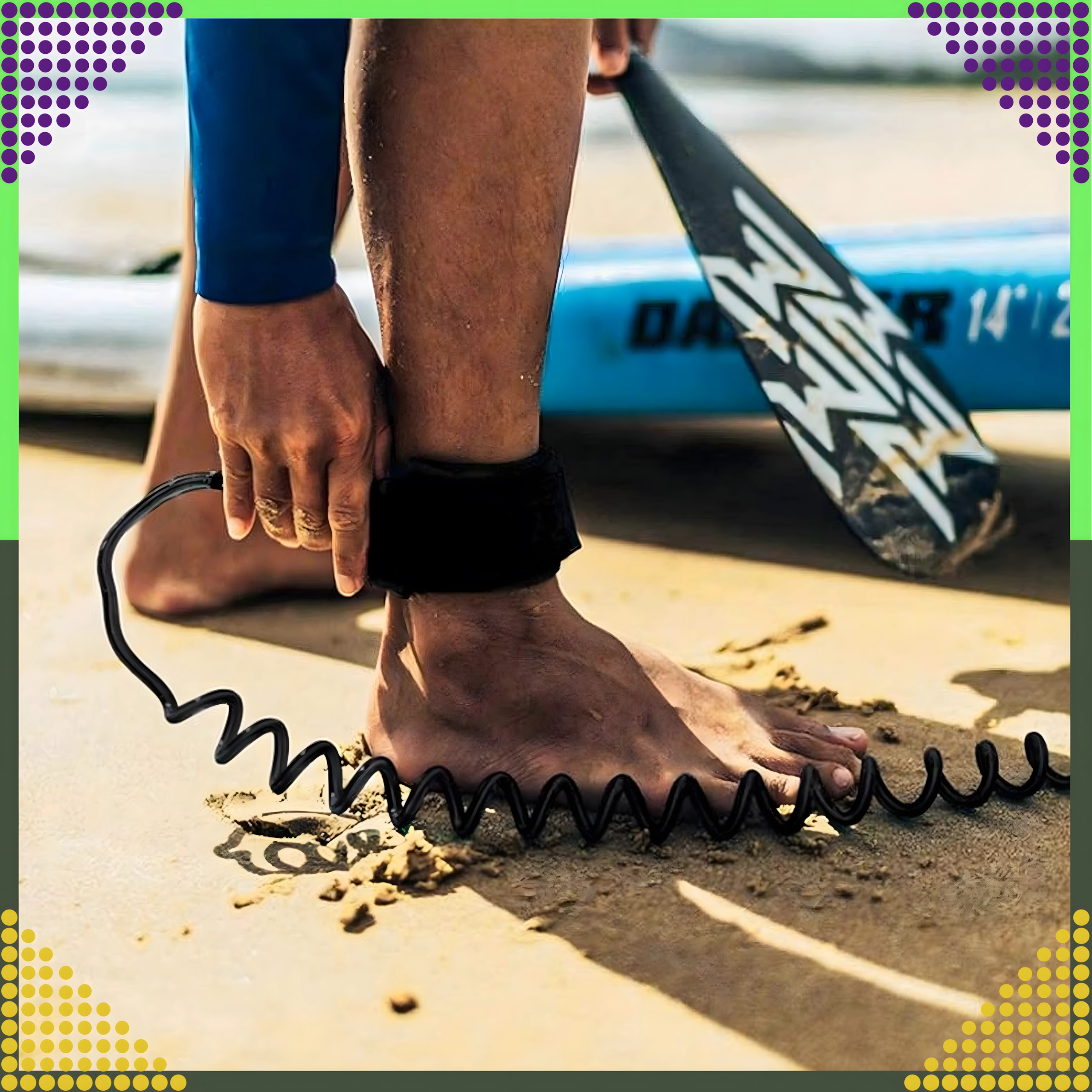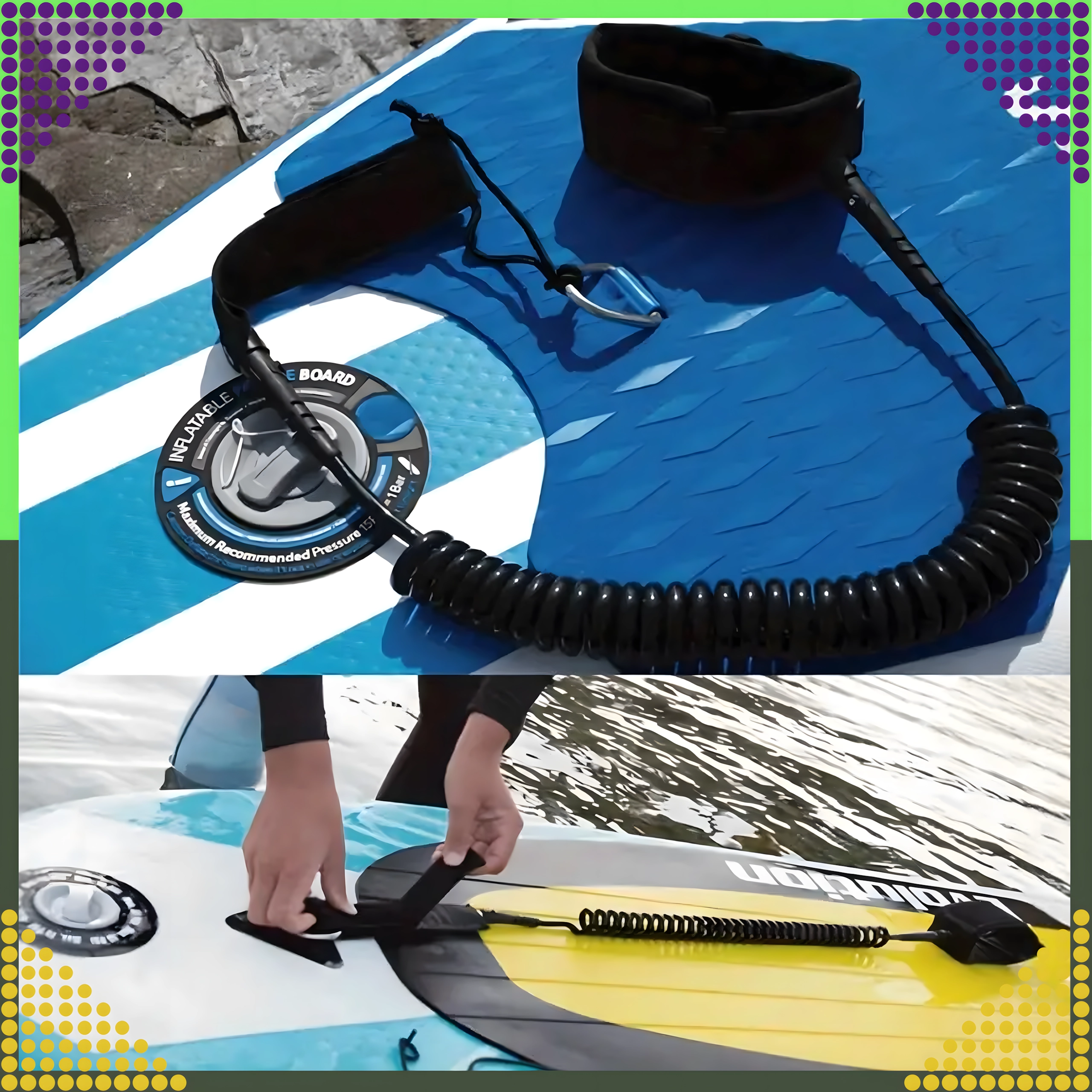 Ta varnostna SUP leash je ključen pripomoček za vsakega suparja. Spiralna TPU vrvica zmanjšuje upor v vodi in omejuje vlečenje za seboj, medtem ko mehko oblazinjena manšeta za gleženj z ježkastim zapiranjem drži zanesljivo in udobno tudi pri daljših izletih.