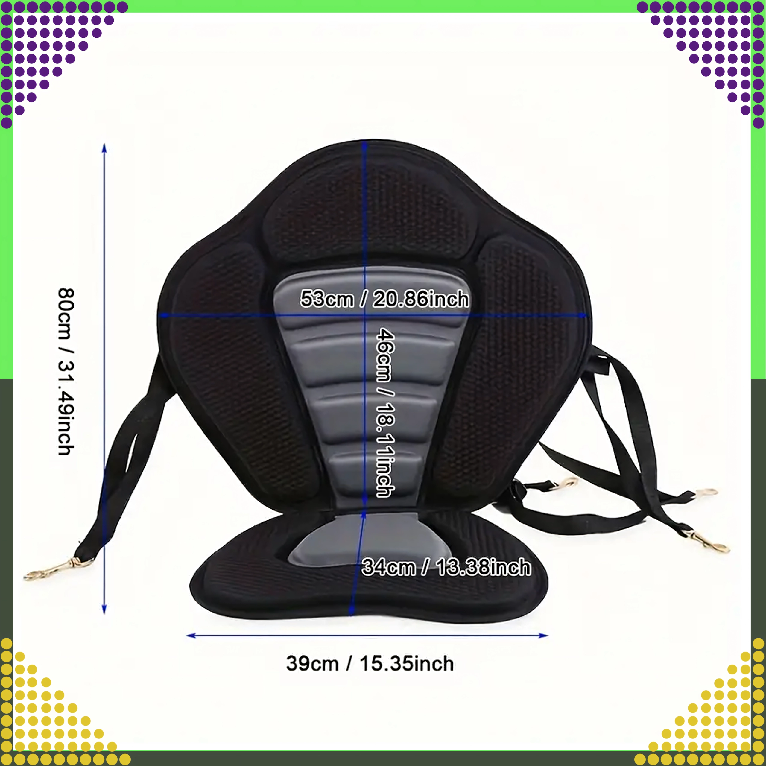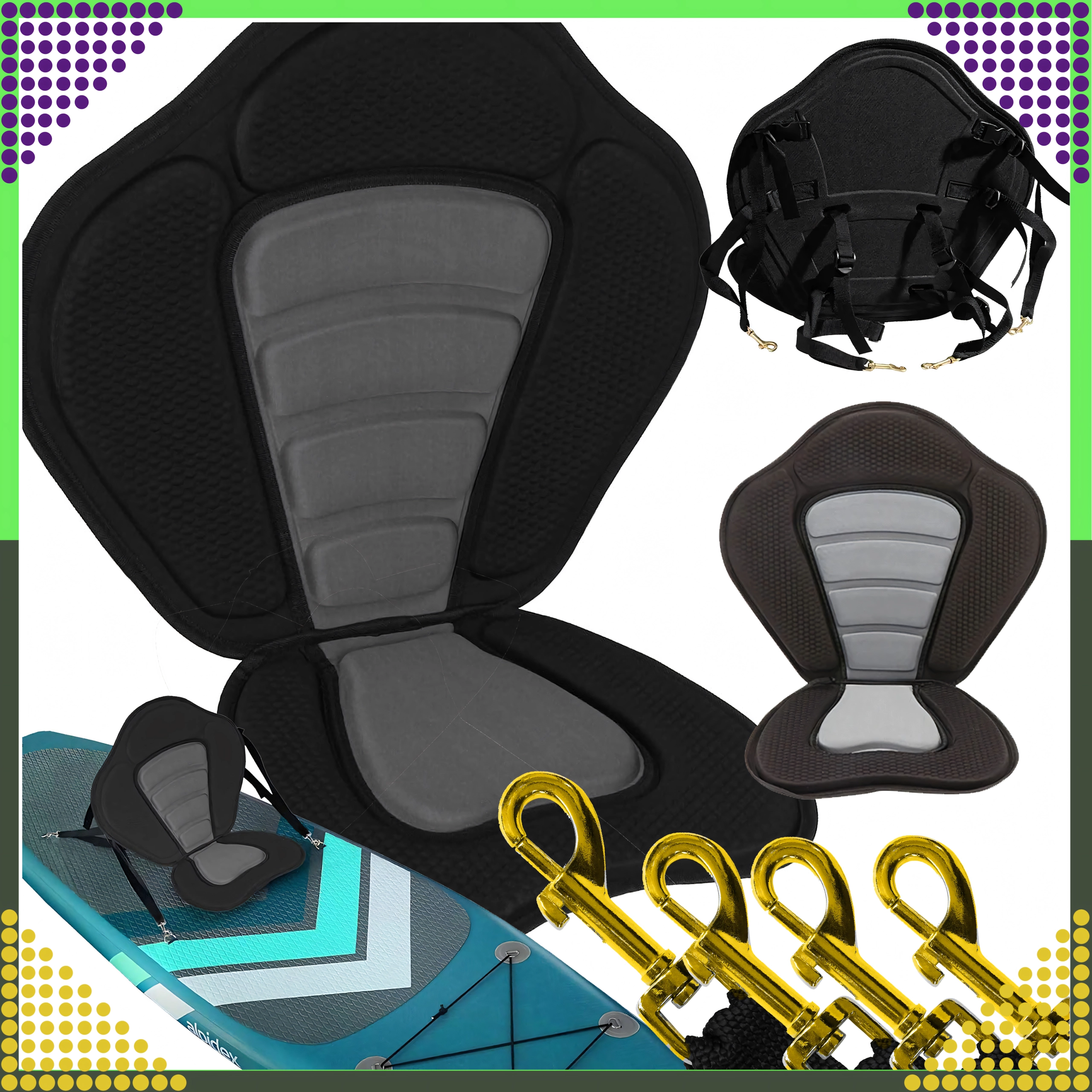 V nekaj sekundah spremenite svojo SUP desko v udoben kajak »sit-on-top«. Ergonomično oblikovan sedež z visokim in širokim naslonom nudi zanesljivo oporo hrbtu, medtem ko oblazinjena, nedrseča osnova ostane na mestu tudi pri daljšem veslanju. Neoprenska pena ne vpija vode ter zagotavlja udobje in vzdržljivost.