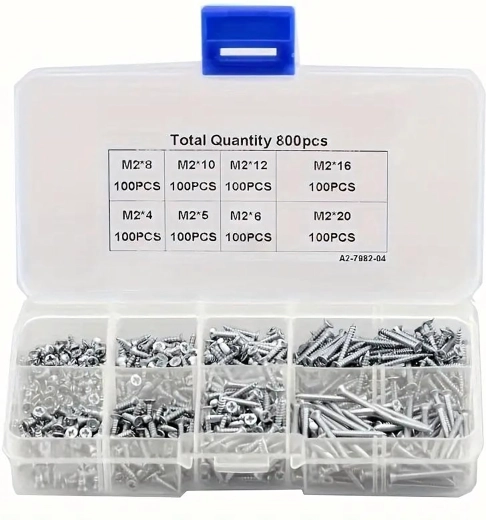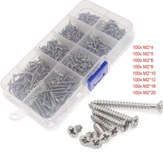 Prozoren organizator s predalčki in opisom velikosti izrazito pospeši delo in izbor. Vijaki so primerni za precizna popravila elektronike, montažo drobnih delov, pritrjevanje tečajev in lahke konstrukcijske spoje v les, plastiko in pločevino.