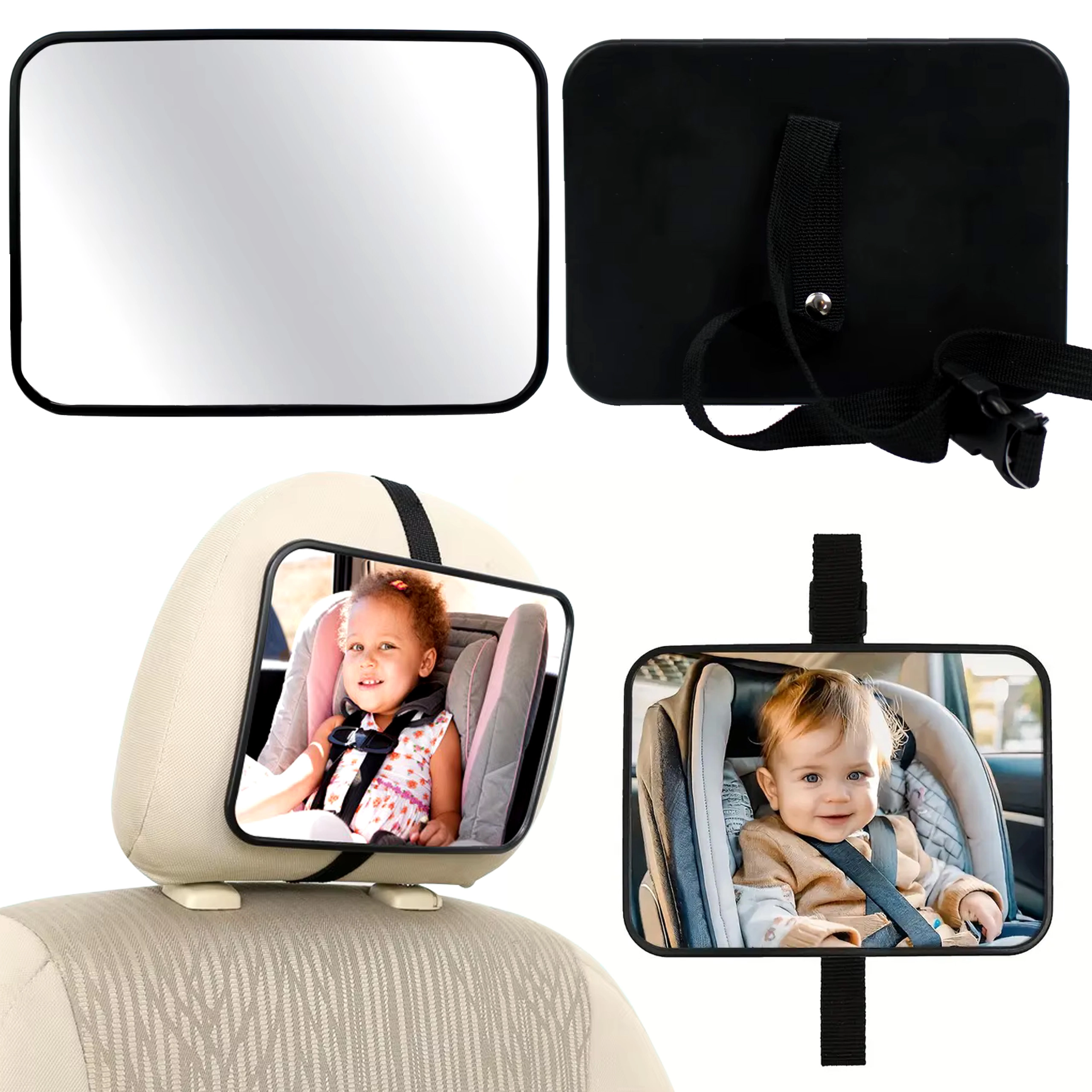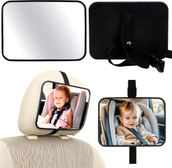 Praktično otroško ogledalo za avto vam omogoča, da imate dojenčka v avtosedežu ves čas pod nadzorom brez obračanja glave. Zahvaljujoč montaži na naslon za glavo in širokemu zornemu polju boste ostali mirni, vaša vožnja pa bo varnejša. Ogledalo je nastavljivo, enostavno se namesti s pomočjo trdnih trakov in nudi stabilno pritrditev za nemoteno spremljanje otroka.