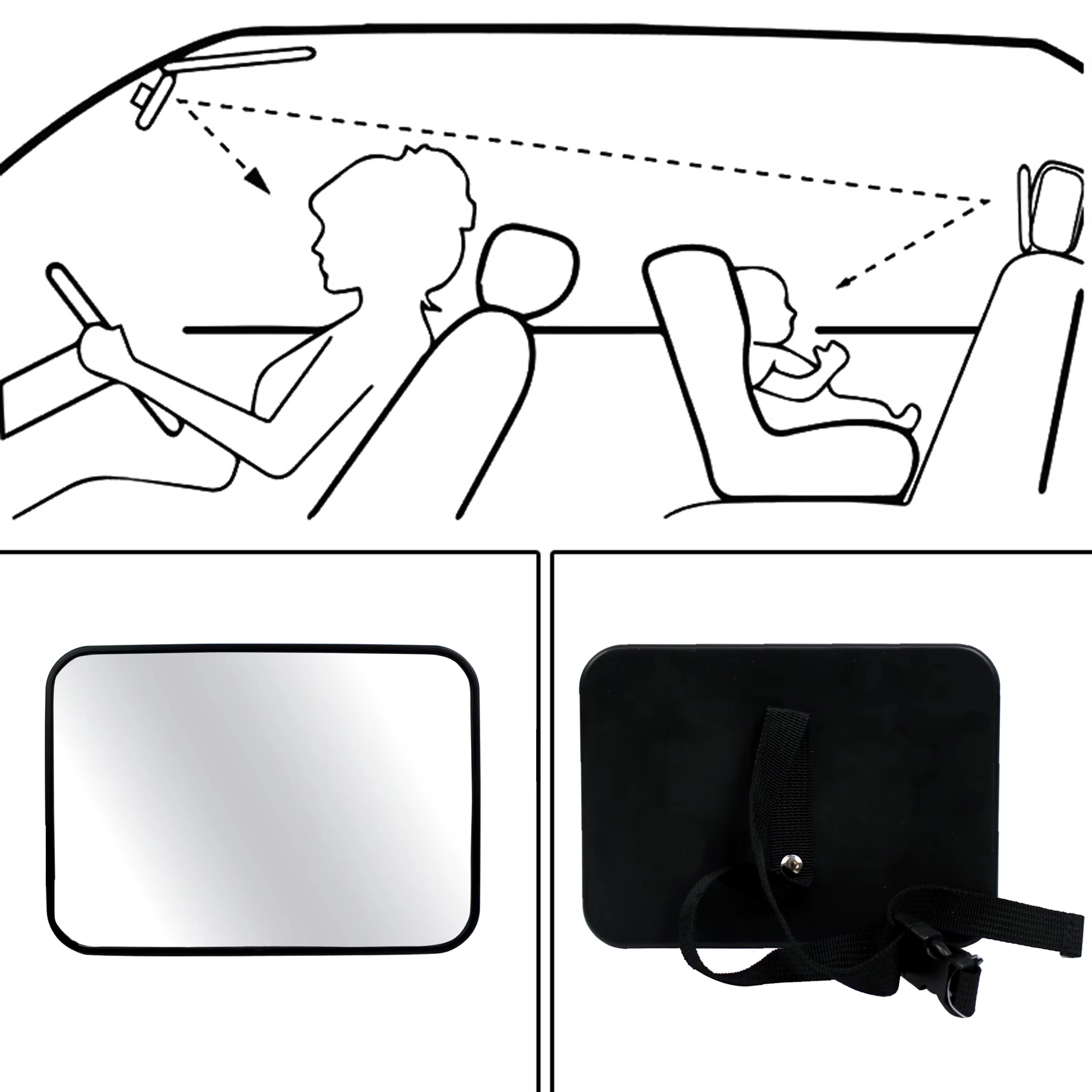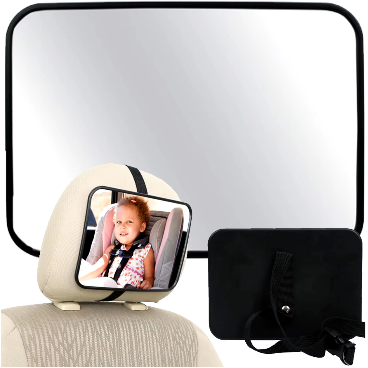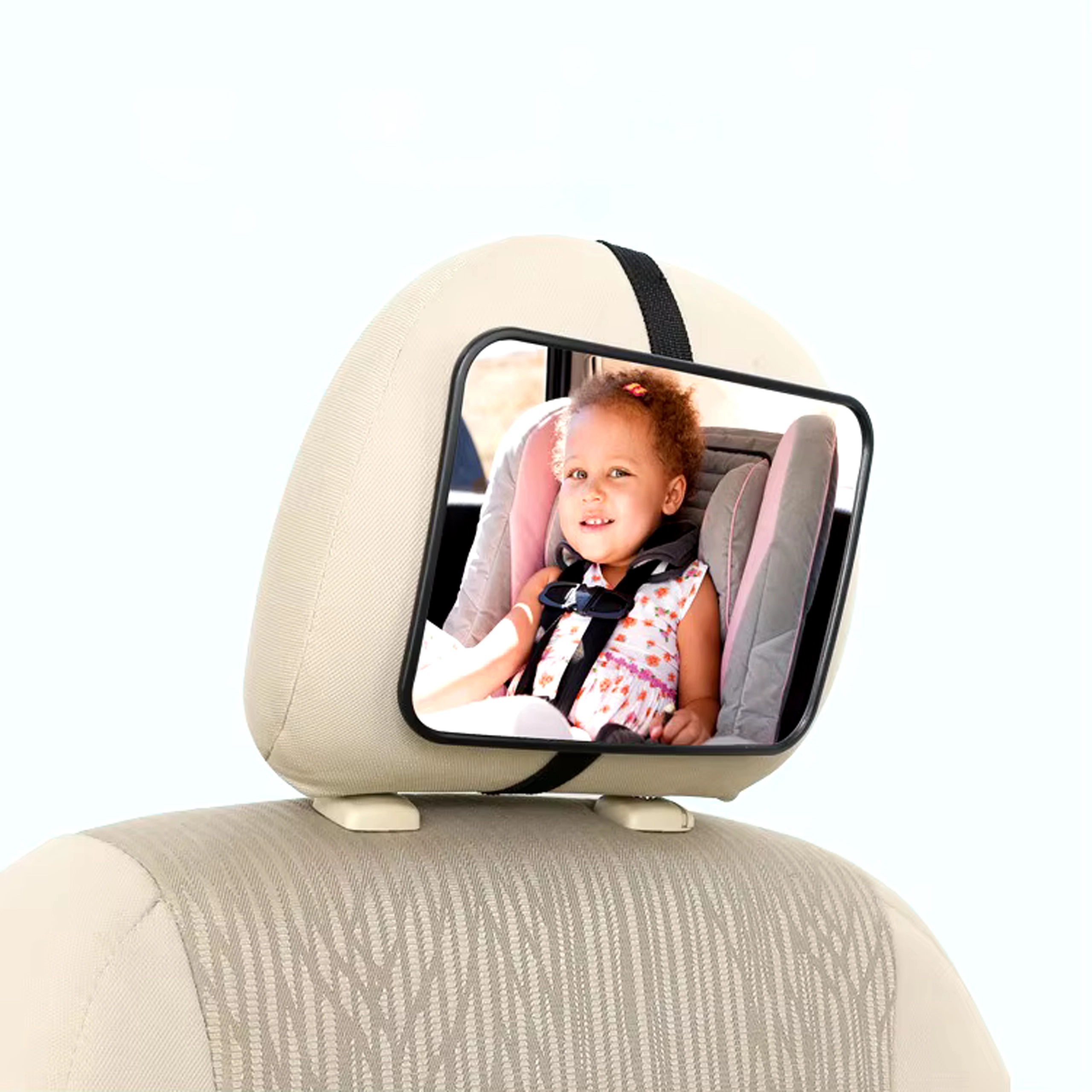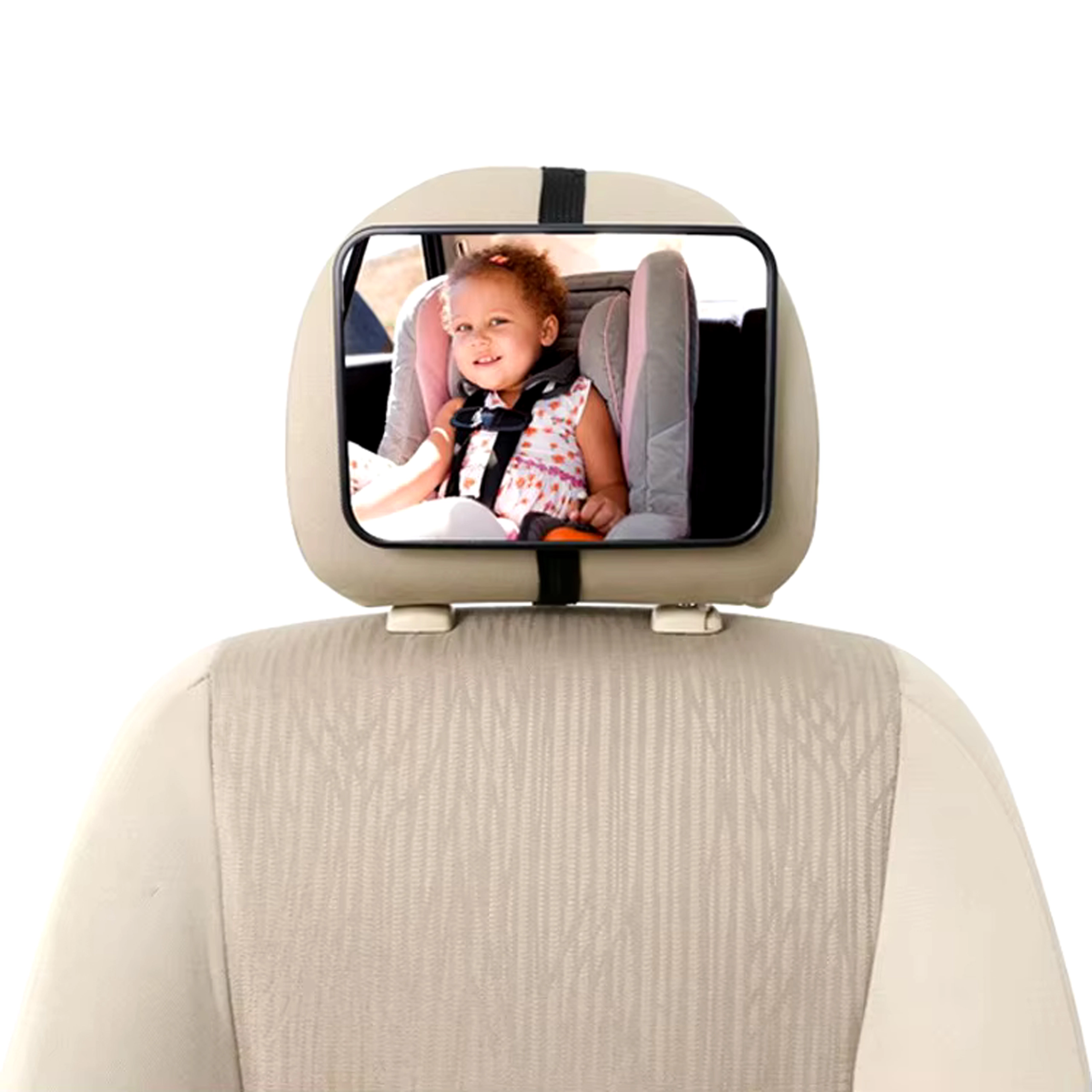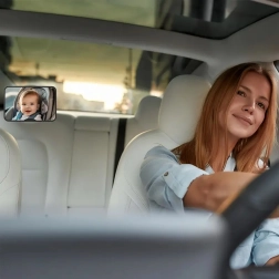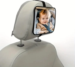 Brez obračanja nazaj med vožnjo. Otroško ogledalo za naslon za glavo zagotavlja jasen in širok pogled na otroka v proti-smernem avtosedežu. Zaradi univerzalne pritrditve in nastavljivega zgloba si preprosto nastavite idealen kot zajema, da imate svojega malega potnika vedno na očeh.