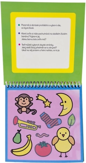 Odkrijte zabavno knjigo za otroke, ki razvija prepoznavanje oblik in barv s pomočjo čarobnega barvanja z vodo. Dovolj je, da napolnite poseben flomaster z vodo in slike se pri barvanju takoj zasvetijo. Ko se barve posušijo, izginejo, zato lahko barvate znova in znova – brez nereda in brez barv.