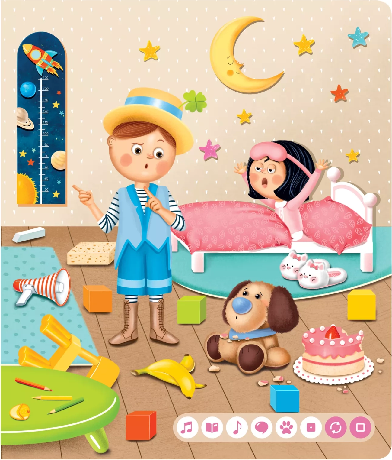 Del knjige so veseli dialogi, čarobni zvoki in neponovljiv humor Nufáčka. Knjiga vsebuje več kot 1.600 zvočnih posnetkov in 8 tematskih pesmic – na vsaki razprti strani eno. Glasovi: Barbora Waschingerová, Lukáš Kunz, Jaroslav Mottl, Jake Maloney, Winnie Maloney in Barbora Munzarová.