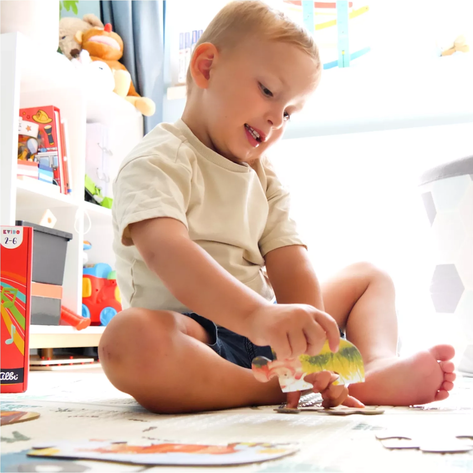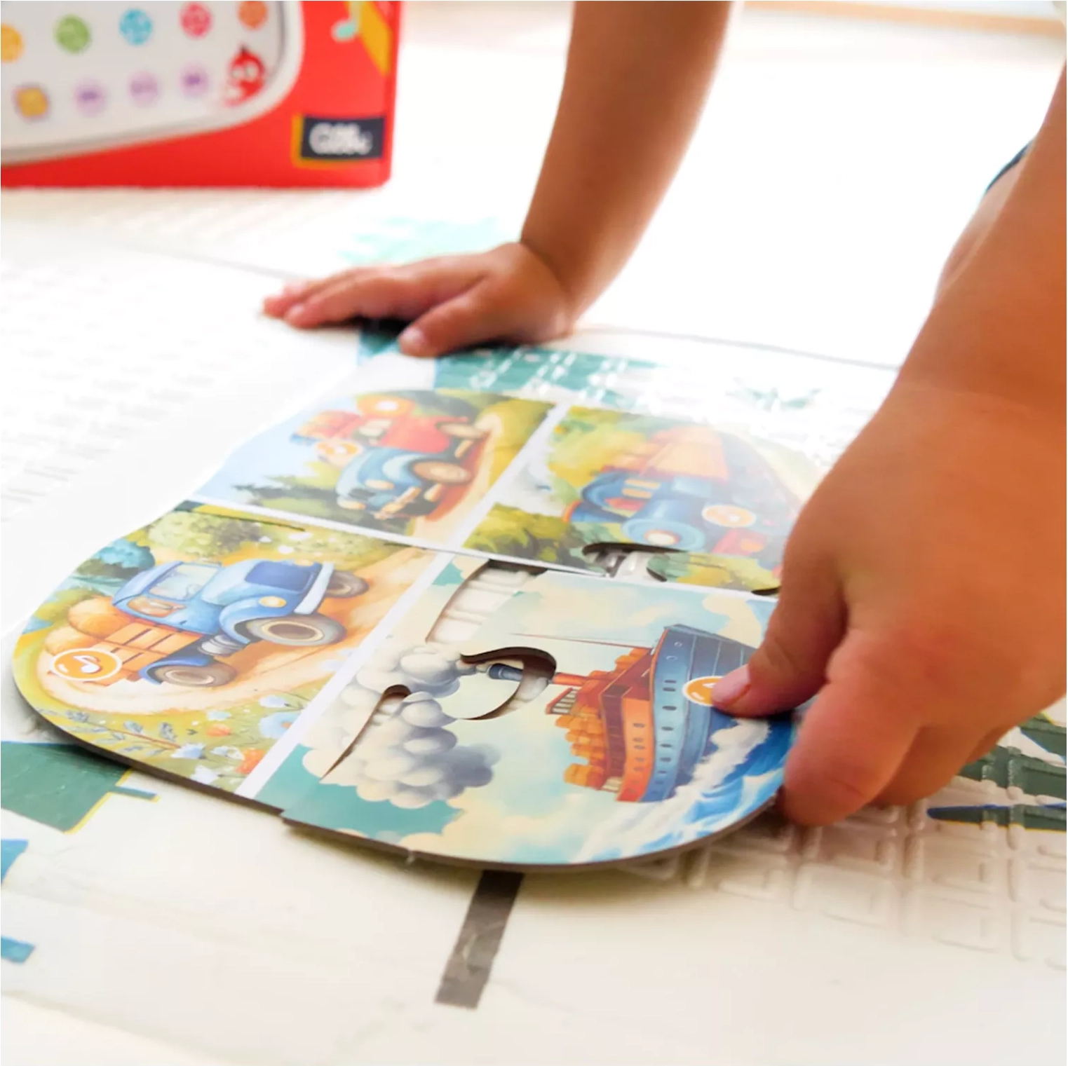 Z več kot 300 zvoki in kvizi otroci razvijajo besedni zaklad, pozornost in logično mišljenje. Veliki, barviti koščki puzzel podpirajo koordinacijo oko–roka in fino motoriko. Vključuje tudi angleške pesmice in pravljice za igrivo spoznavanje tujega jezika.