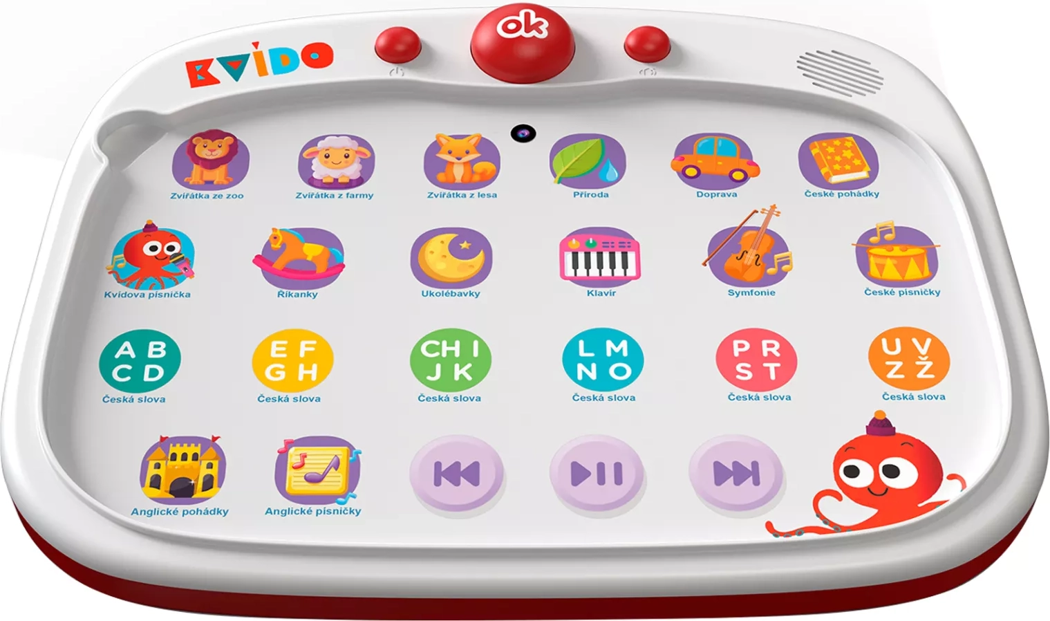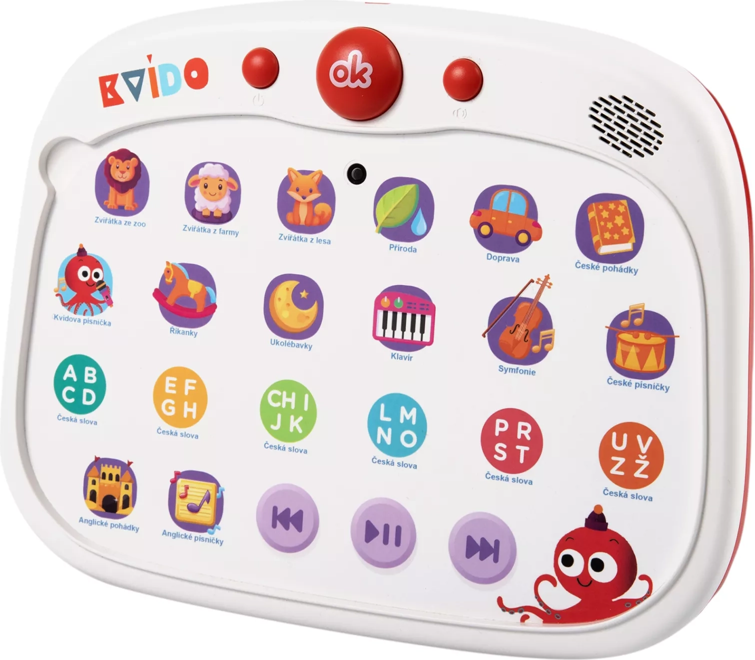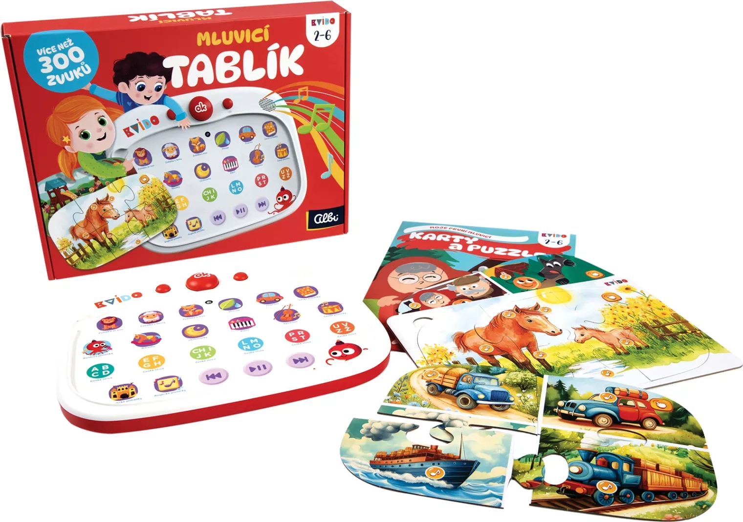 Odkrijte interaktivno učenje z govorečo tablico KvÍdo podjetja Albi, ki združuje dotikalno upravljanje, več kot 300 zvokov in zabavne kvize. Otroci bodo uživali v pesmicah in pravljicah (češčina + angleščina), sestavljali velike puzzle ter urili fino motoriko, spomin in spoznavanje sveta.