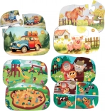 - 4 slike puzzel + 4 kartice z motivi prometa, kmetije, igrišča, peskovnika ter češke pravljice O Kroglici.