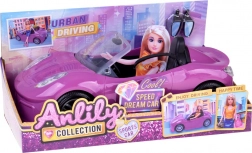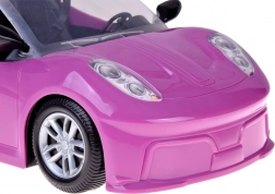 Eleganten kabrio v dekliški vijolični barvi je idealen dodatek k svetu iger s punčkami. Zahvaljujoč odprti strehi je posedanje punčk enostavno, vožnja na soncu pa še zabavnejša. Notranjost navduši z vrtljivim volanom, nalepkami merilnikov na armaturni plošči in nastavljivimi pasovi – vse za še bolj realistično izkušnjo.