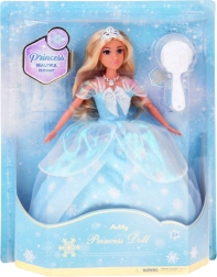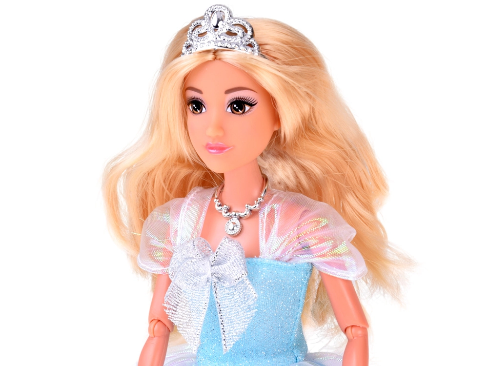 Del pakiranja so elegantna ogrlica, tiara, čevlji s peto in praktična krtača za lase, zato nič ne ovira takojšnje zabave. Ta punčka je popolno darilo za otroke, ki obožujejo princesne zgodbe, modno preoblačenje in zimsko domišljijo.