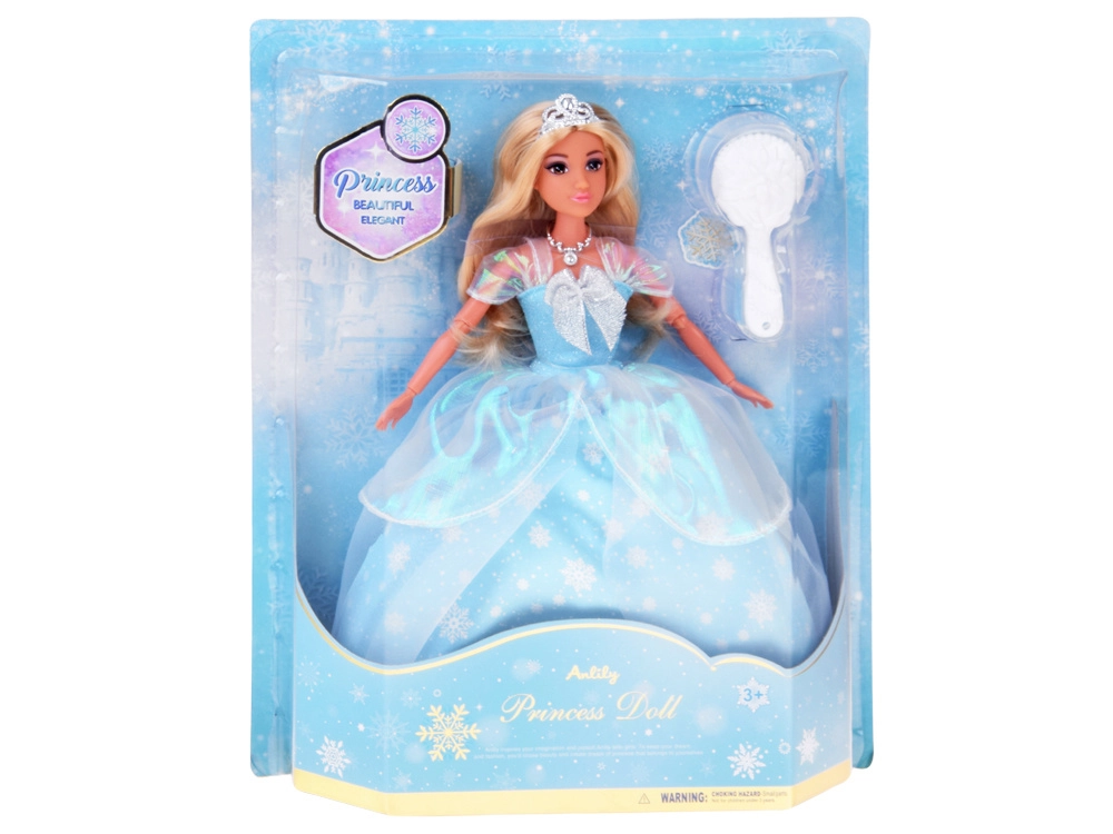 Doživite zimsko pravljico s punčko Anlily, ki zasije v bleščeči modri obleki s snežinkami, lahkimi plastenimi krili in srebrno tiaro. Dolgi svetli lasje so idealni za česanje, pletenje kit in ustvarjanje večernih pričesk. Gibljive roke olajšajo stilsko poziranje in uprizarjanje prizorov iz kraljevskega življenja.