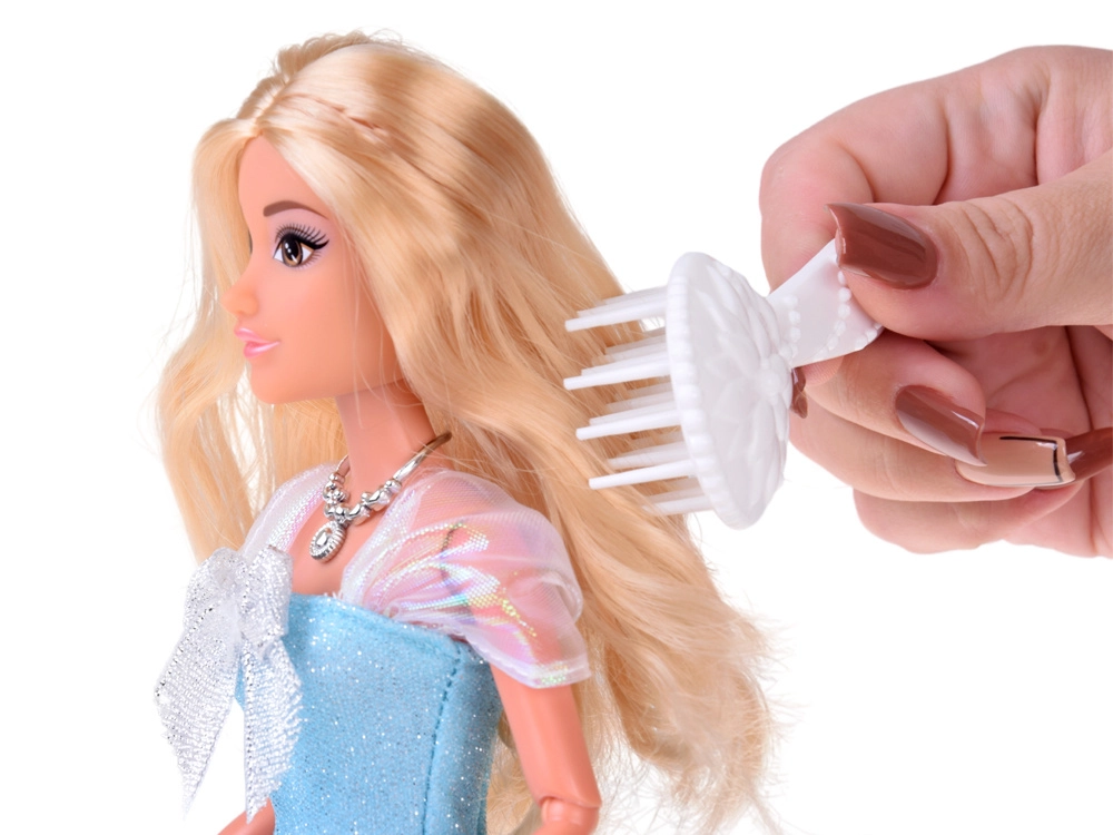 Dolge svetle lase lahko češete s priloženo krtačo – pletite kitke in ustvarjajte kraljevske pričeske.