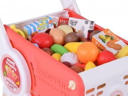 Otroški nakupovalni voziček v rdeče-beli barvi je idealen za igro trgovine, kuhinjice in domače prizore. Robustna, a lahka konstrukcija s štirimi kolesi omogoča gladko vožnjo po stanovanju, medtem ko spodnja polica nudi dodatni prostor za »večje nakupe«. Priložen je pisan komplet plastičnih živil, ki delujejo realistično in vabijo k raziskovanju.